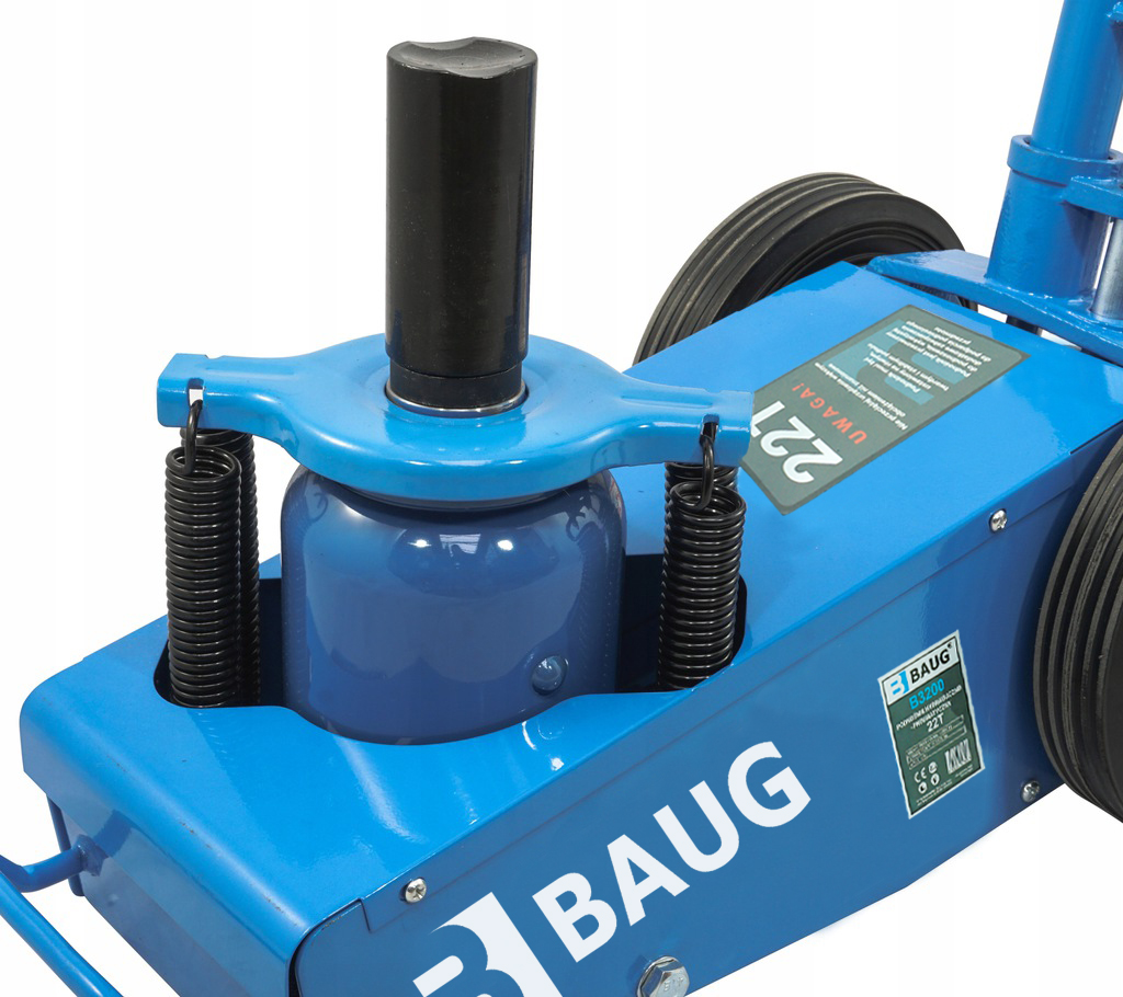 Гідравлічно-пневматичний підйомник (популярніше жабка) BAUG 22 T для інтенсивних робіт в автосервісі, з діапазоном підйому до 535 мм, оснащений опорними колесами, які дозволяє легко розмістити його будь-де під транспортним засобом. Ідеальні інструменти для механіків.