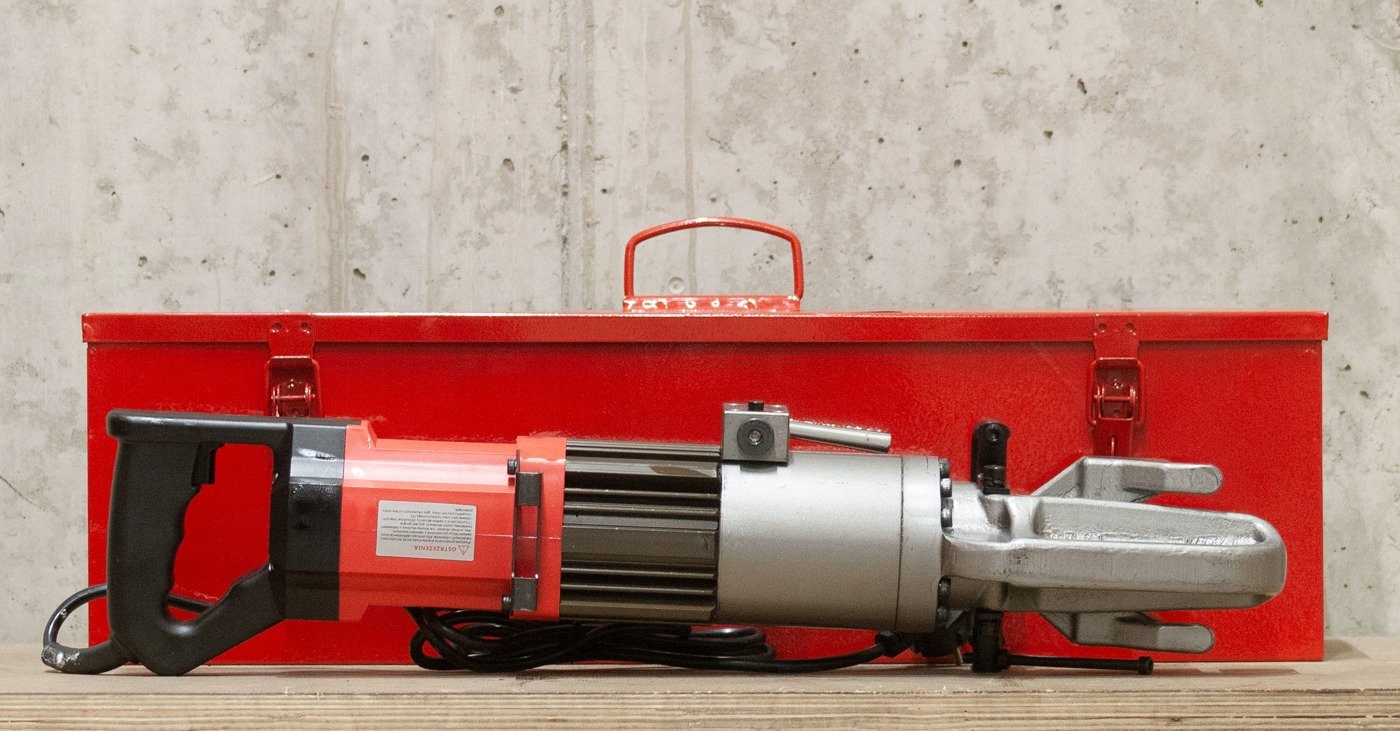 Можна використовувати для згинання гладких або ребристих арматурних стрижнів. Час згинання становить всього 2-2,5 секунди в залежності від кута. Згинання можна перервати в будь-який момент після досягнення очікуваного кута зігнутого арматурного стержня, відпустивши курок пристрою. Секундомір повертається, клацнувши перемикач повернення. Верхня рукоятка дозволяє оператору згинального верстата регулювати робоче положення в найменш набридливому положенні. Ми також пропонуємо згинальні верстати із задньою ручкою. Вибір залежить від ваших уподобань і способу роботи з інструментом.