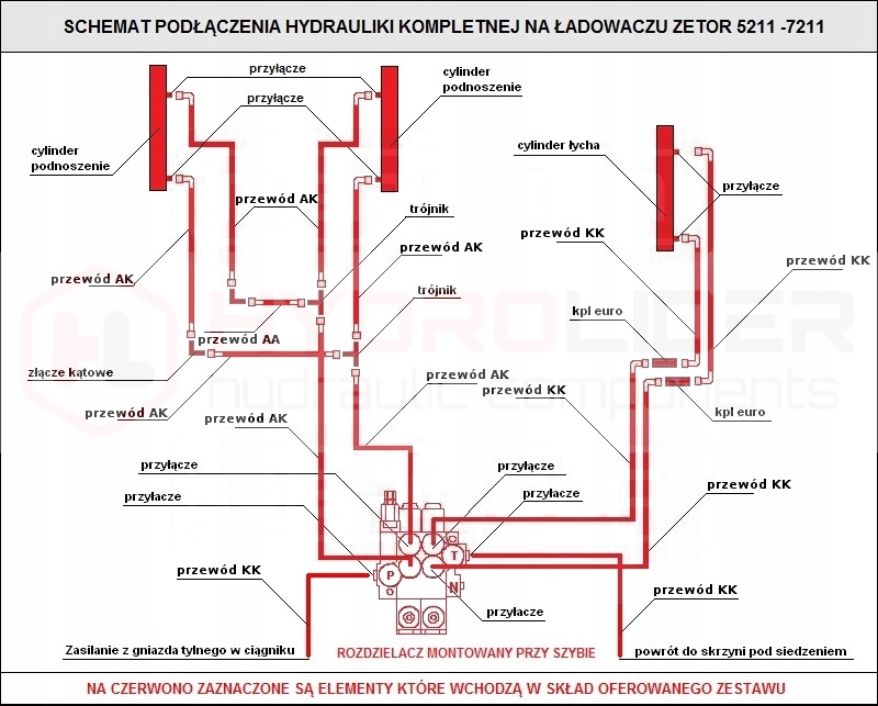 Набір перевірений і багато разів монтувався на навантажувачі тракторів ZETOR, включаючи такі моделі як: 5011, 5211, 6011, 6211, 7011, 7211 та ін. похідні.
