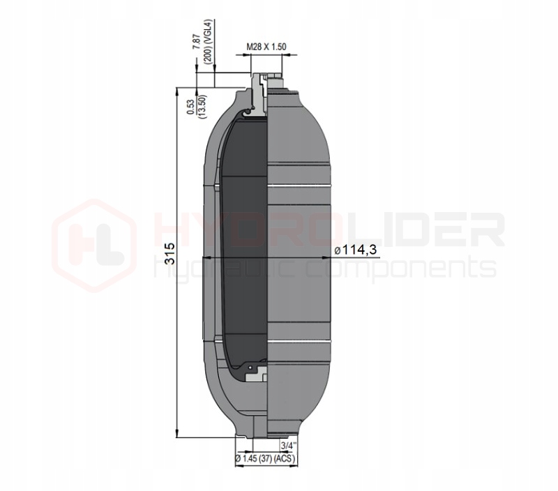 Hydroacumulator Hydropneumatic ACS 1.5 Capacity: 1.5l Maximum pressure: 330Bar h1>