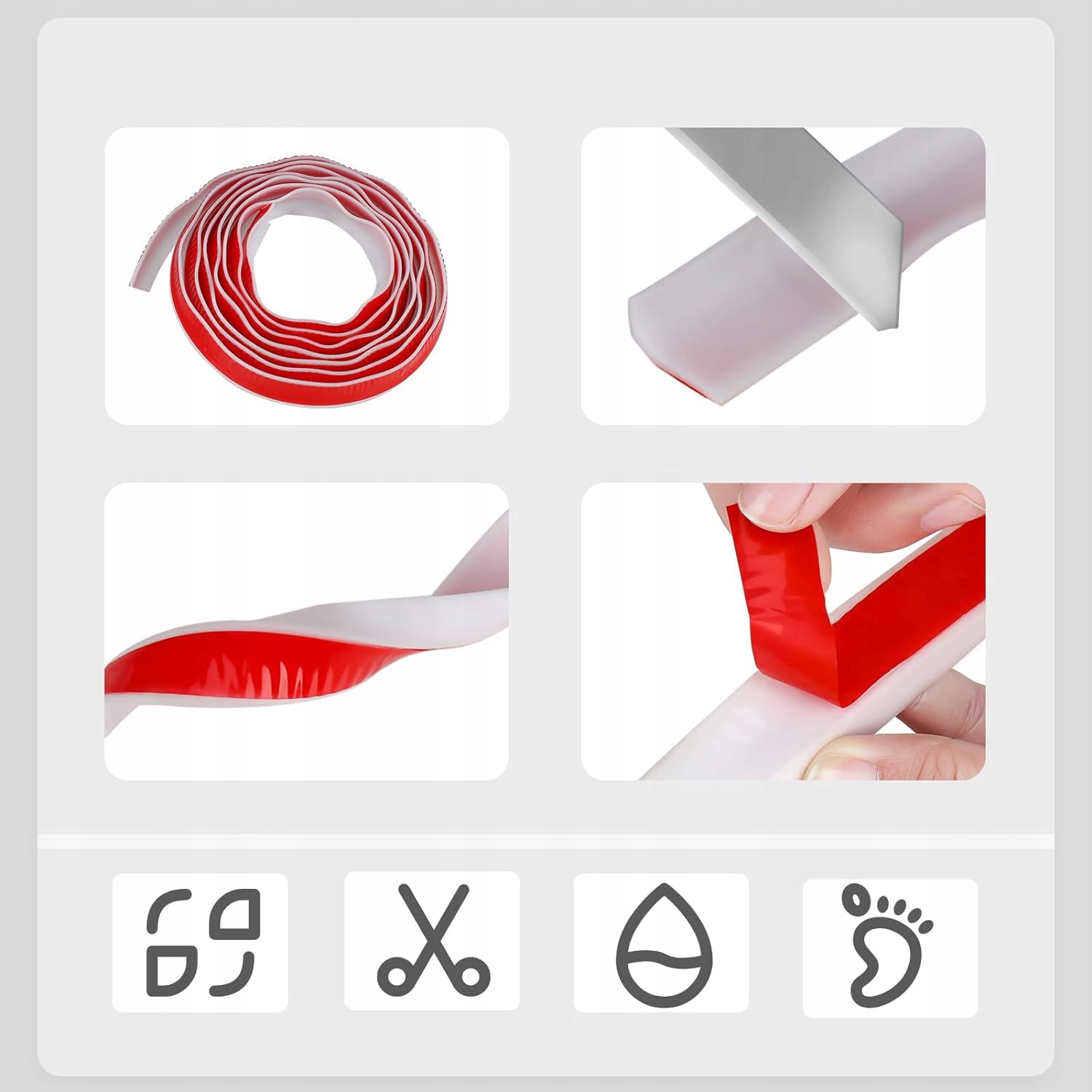 ✔️✔️ 【Спосіб встановлення】 : Спочатку очистіть і висушіть поверхню стільниці (або підлоги), відміряйте та відріжте пробку для душа на вашу довжину, видаліть червону клейку смужку на тильній стороні, приклейте до гладкої поверхні (взимку ви можете використовувати фен, щоб нагріти її для кращої липкості). ПРИМІТКА: для тривалого використання використовуйте силіконовий герметик, щоб заповнити краї водонепроникного бар’єру та просушити протягом 24 годин, доки герметики не затвердіють (у комплект не входить силіконовий герметик)!!!