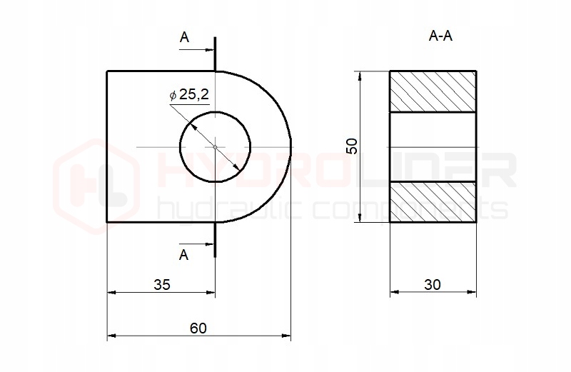 ГІДРОЦИЛІНДР ВУШКО ПІД ЗВАРЮВАННЯ 25х50х30 ОТВОР 25.2мм ГІДРОЛАЙДЕР