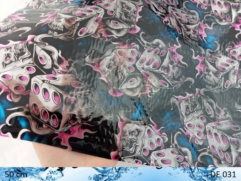 Фольга т.зв. гідрографічна плівка, нагадує прозору фольгу з нанесеним малюнком. Даний візерунок є еквівалентом ефекту, який буде досягнуто на елементі. Пам'ятайте, що кінцевий ефект також залежить від обраної основи. Наприклад, чорний праймер для білої фольги серії карбон дасть ефект сажі.