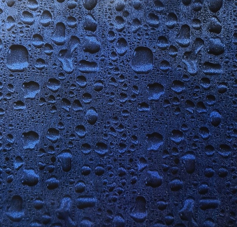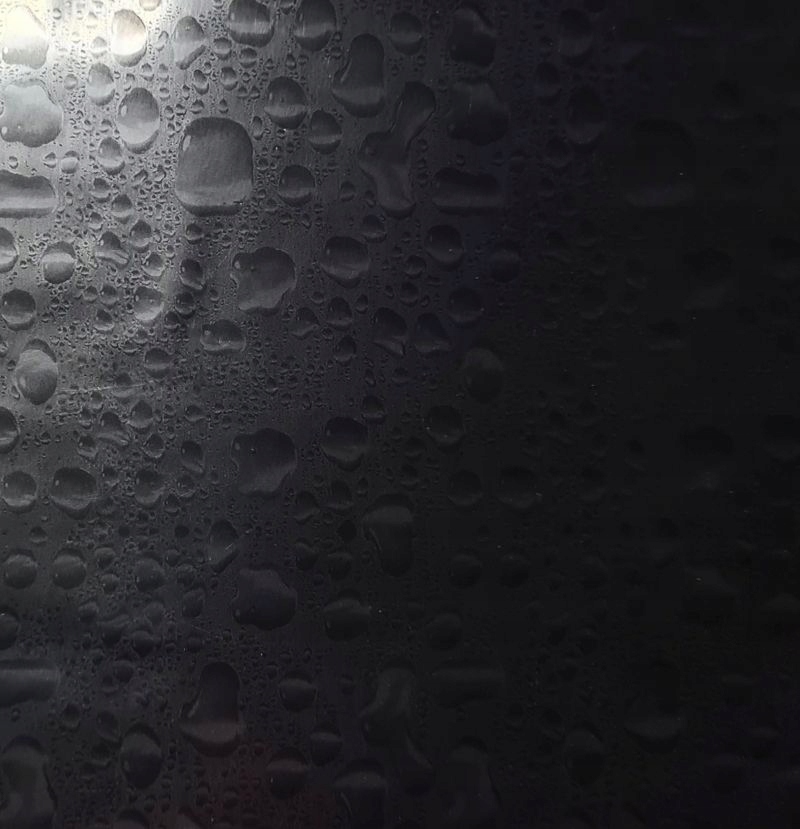 представляє монохроматичну поверхню з краплями води на ній. Кольори графіки коливаються у відтінках сірого. Ідеально відтворені краплі води мають нерівну поверхню і виглядають так, ніби вони осіли на склі. Крім того, фольга прозора, і, розмістивши відповідний фон, ми можемо створити багато версій цього візерунка, деякі з яких видно на інших фотографіях. Мотив із використанням води ідеально підійде для декорування, напр. елементи ванної кімнати. Фольга буде цікавою прикрасою, напр. велосипеда, шолома або корпусу комп'ютера.