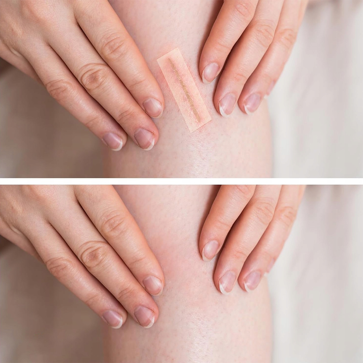 Шрами м'якші, плоскіші та менш помітні. Силіконові пластирі від шрамів є ефективним рішенням для зменшення видимості шрамів. Вони можуть здатися місцевим, поверхневим рішенням, але вони також стимулюють регенерацію глибших шарів шкіри!