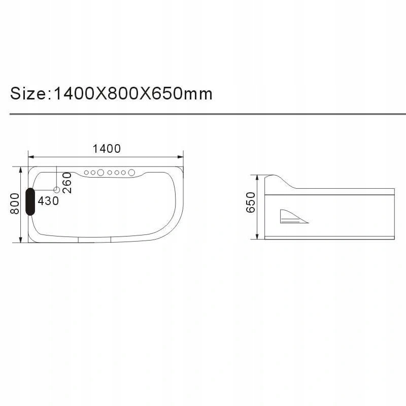 ГІДРОМАСАЖНА ВАННА LEMUR 796L ЛІВА БІЛА 140x80 СМ