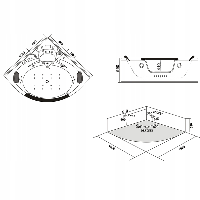 ГІДРОМАСАЖНА ВАННА ORINO 632A 152x152 CM