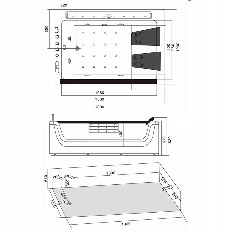 ✅ 12 форсунок на дні ванни (ДЖАКУЗІ) + ДОДАТКОВО 8 семиколірних світлодіодів повітря форсунки !!