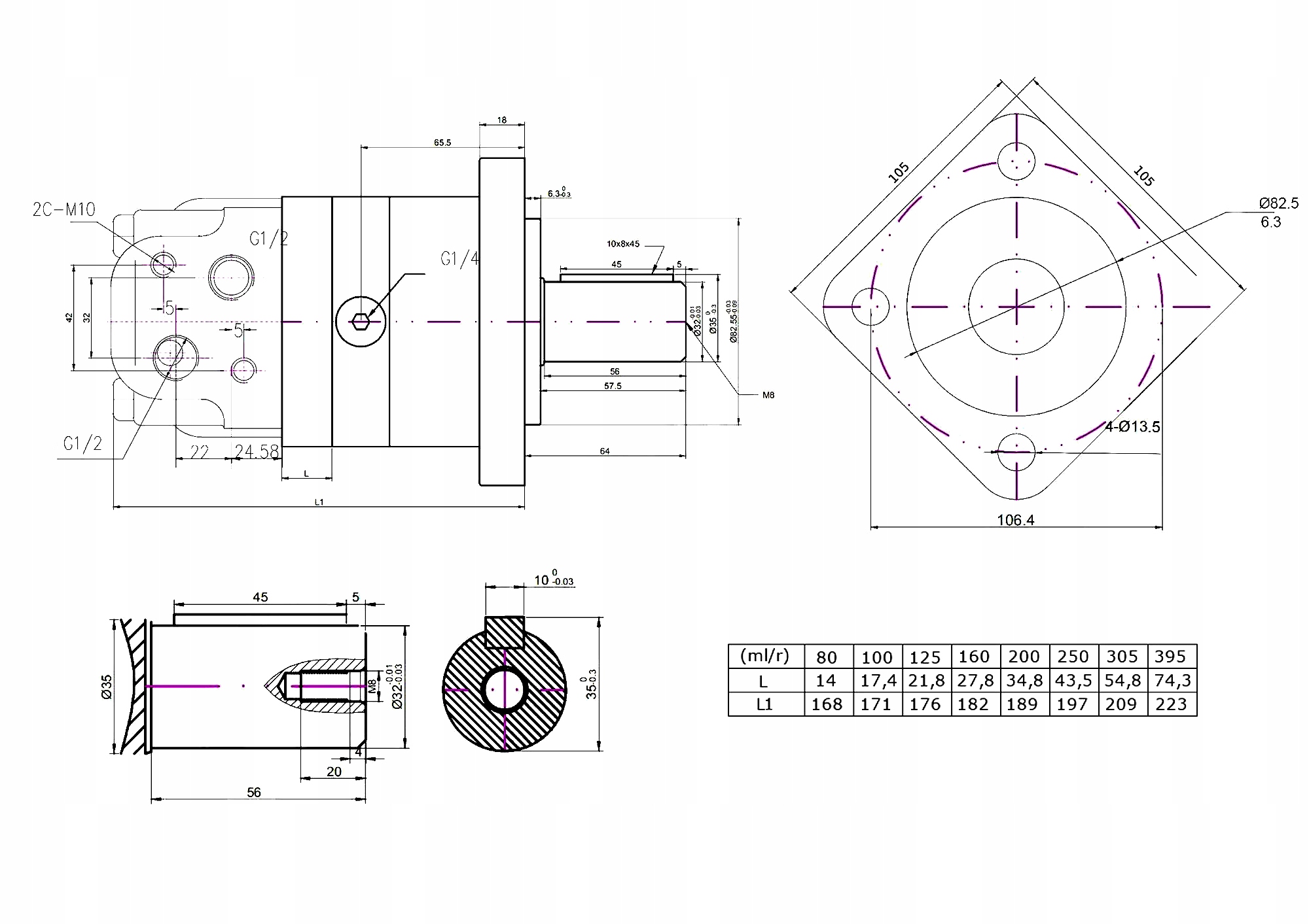 Гідромотор BM5 80cm3 ALSG3, SMS, OMZS, OMSS, BMS, OMS вал 32мм