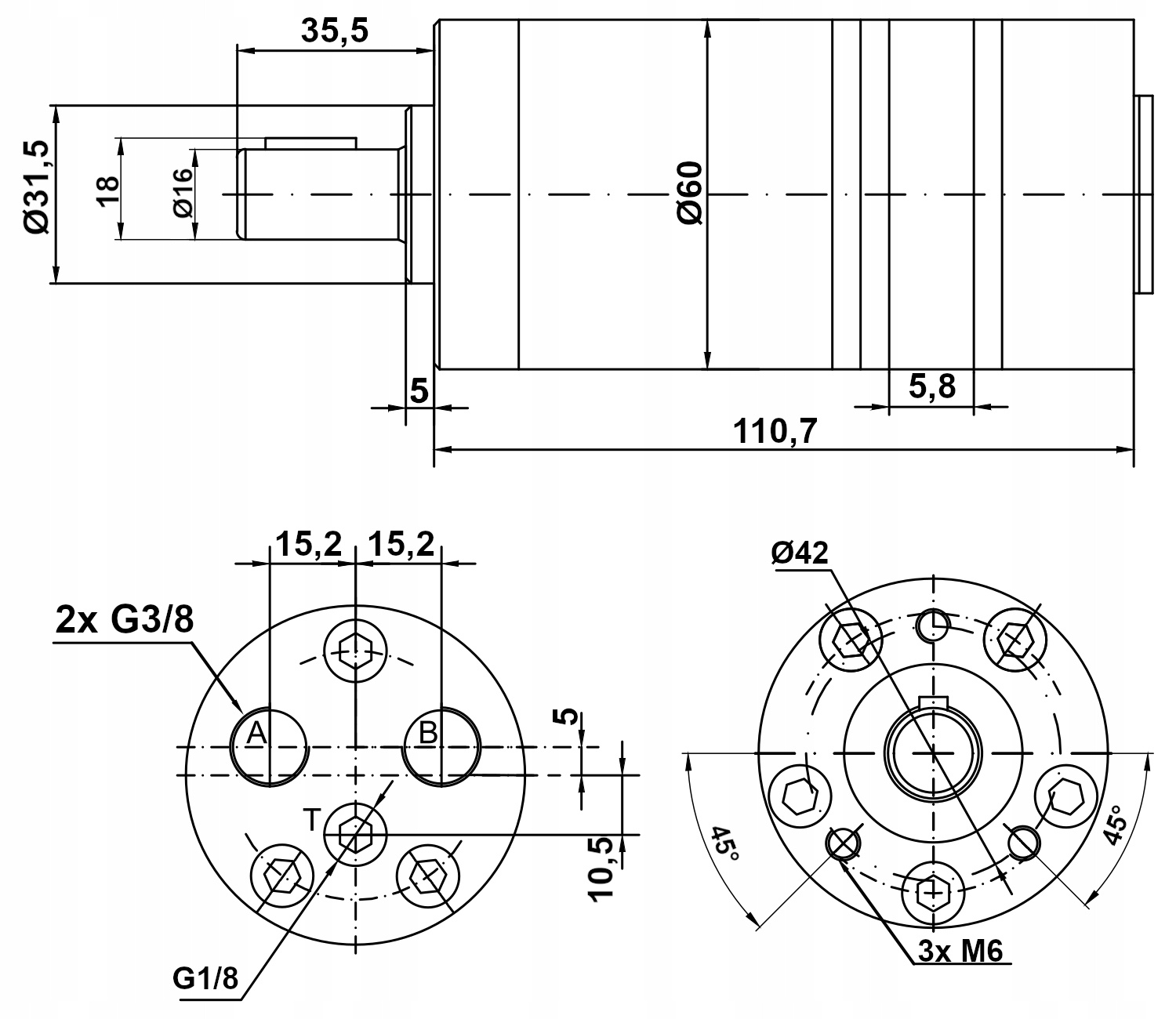 ГІДРОМОТОР БММ СММ ММС ОММ ДММ. 8 куб.см ЗАДНІ ПОРТИ