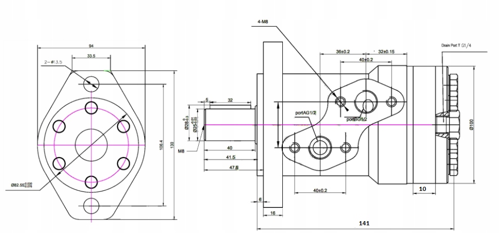 Орбітальний гідромотор (геротор) продуктивністю 50 см³/об, з підключеннями G ½", SAE A. Вал прямий діаметром Ø25х40мм з клином. На інших аукціонах у нас також є втулки, призначені для приварювання до валу, монтажні фланці або муфти до валу двигуна.