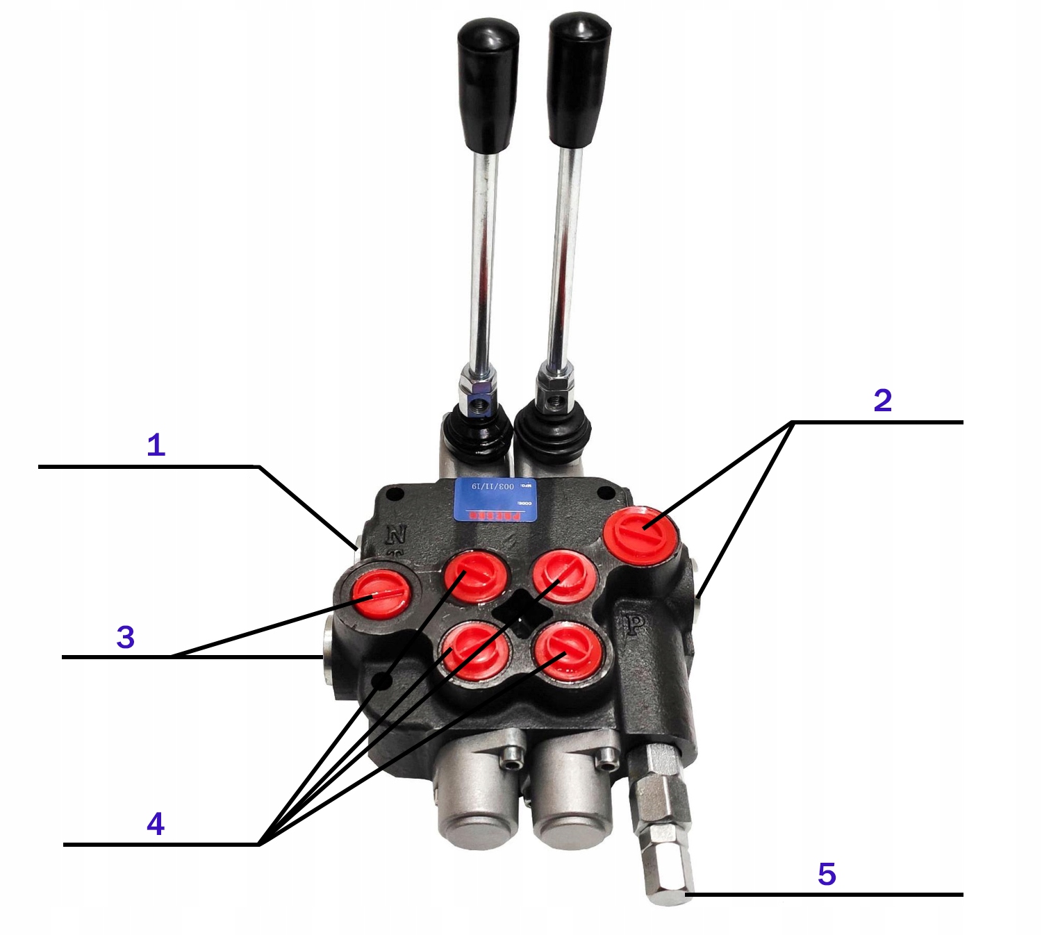ЯКІСНИЙ ГІДРАВЛІЧНИЙ РОЗДІЛЬНИК PRESKO - П'ЯТИСЕКЦІЙНИЙ, З ВАЖЕЛЕВИМ КЕРУВАННЯМ, ПОТОК 80л/хв.