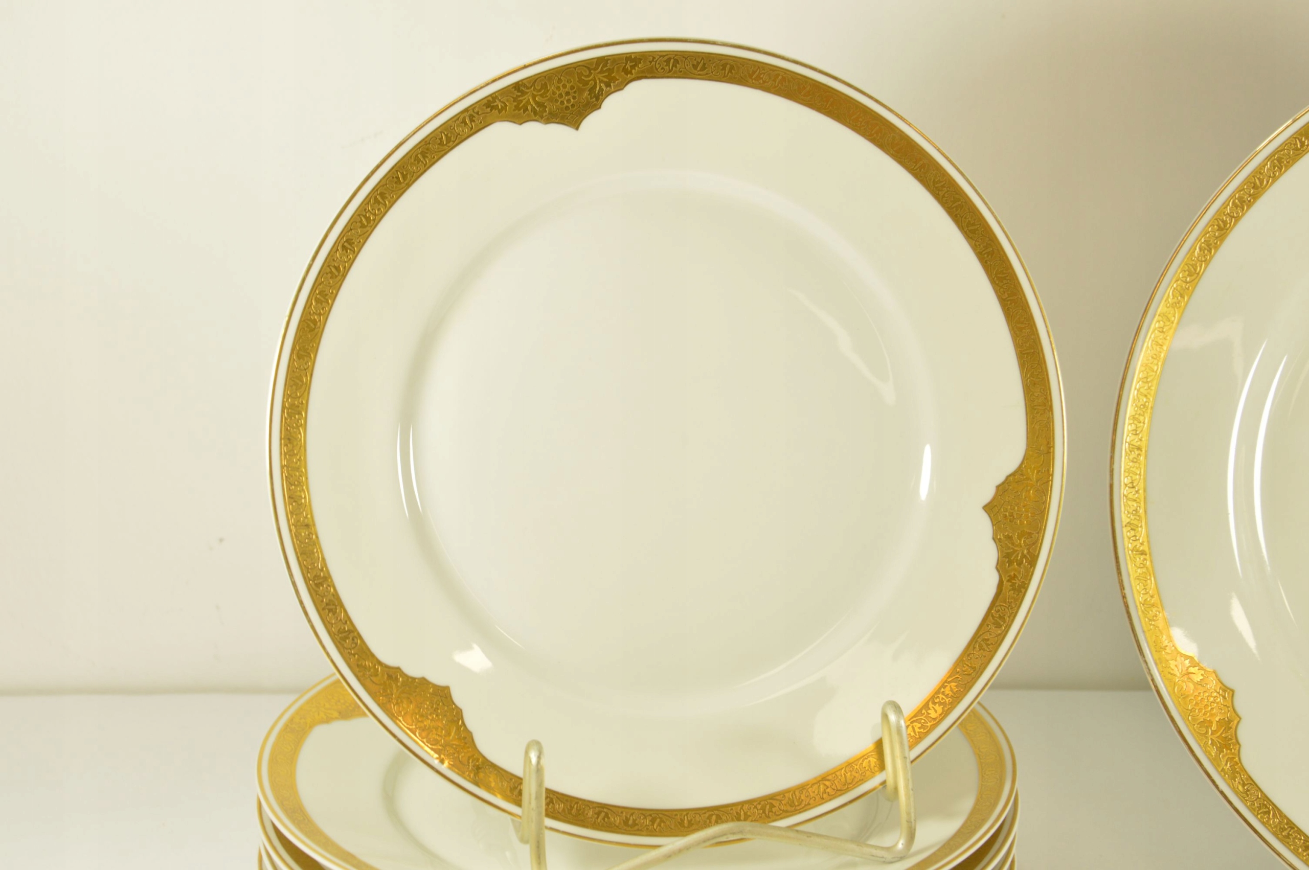 Унікальний, чудово збережений набір великих тарілок Giesche. У наборі шість тарілок і тарілка. Красиво декоровані та розписані вручну елементи з декором 596. Дуже рідкісні в такому дизайні та стані.