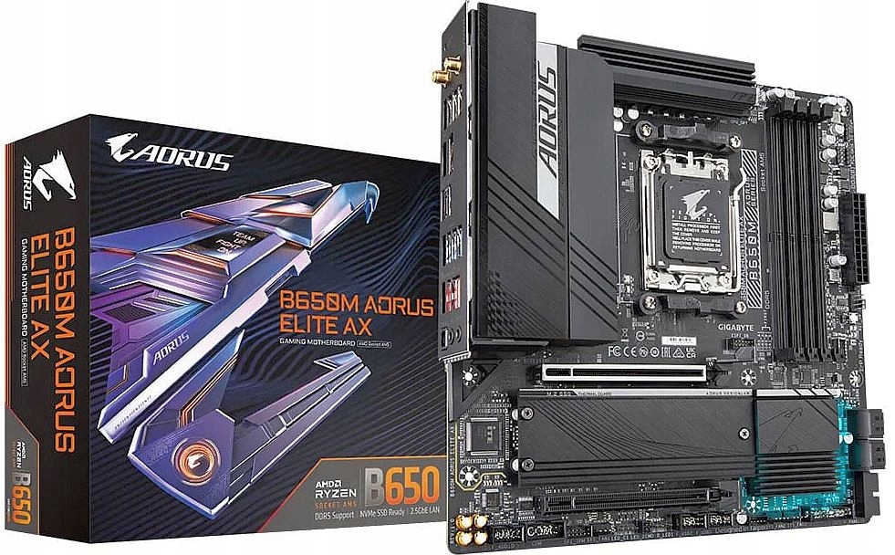 - Gigabyte B650m Aorus Elite Ax Motherboard забезпечує виняткову продуктивність завдяки підтримці серії AMD Ryzen 7000/8000/9000.