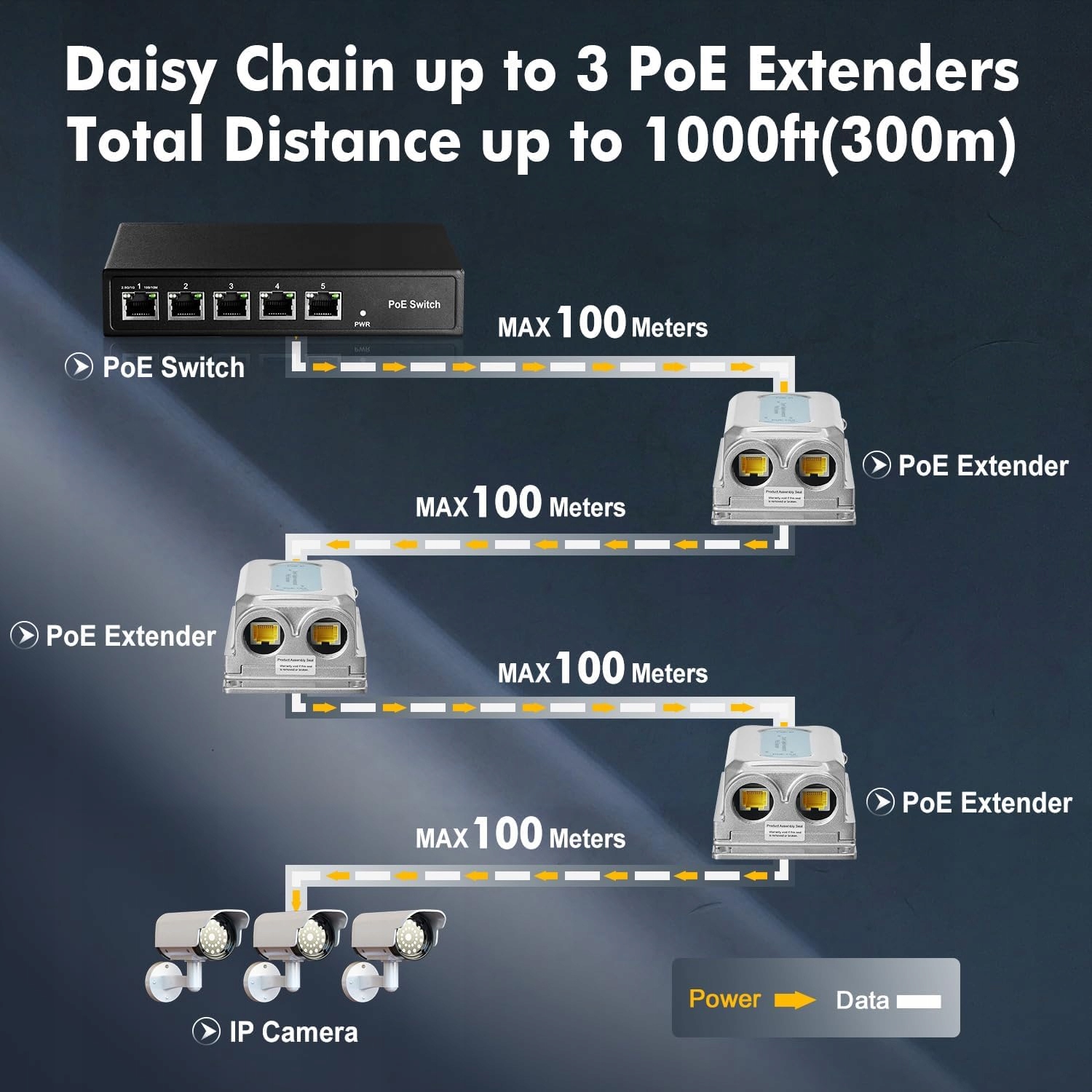 Простий у встановленні: Власник стін, підтримує входи та виходи з високою потужністю, що підходить для багатьох позицій. Сумісний з 3 -ма каскадними рівнями, ви можете підключити POE AP, камеру, телефонні та інші пристрої POE.