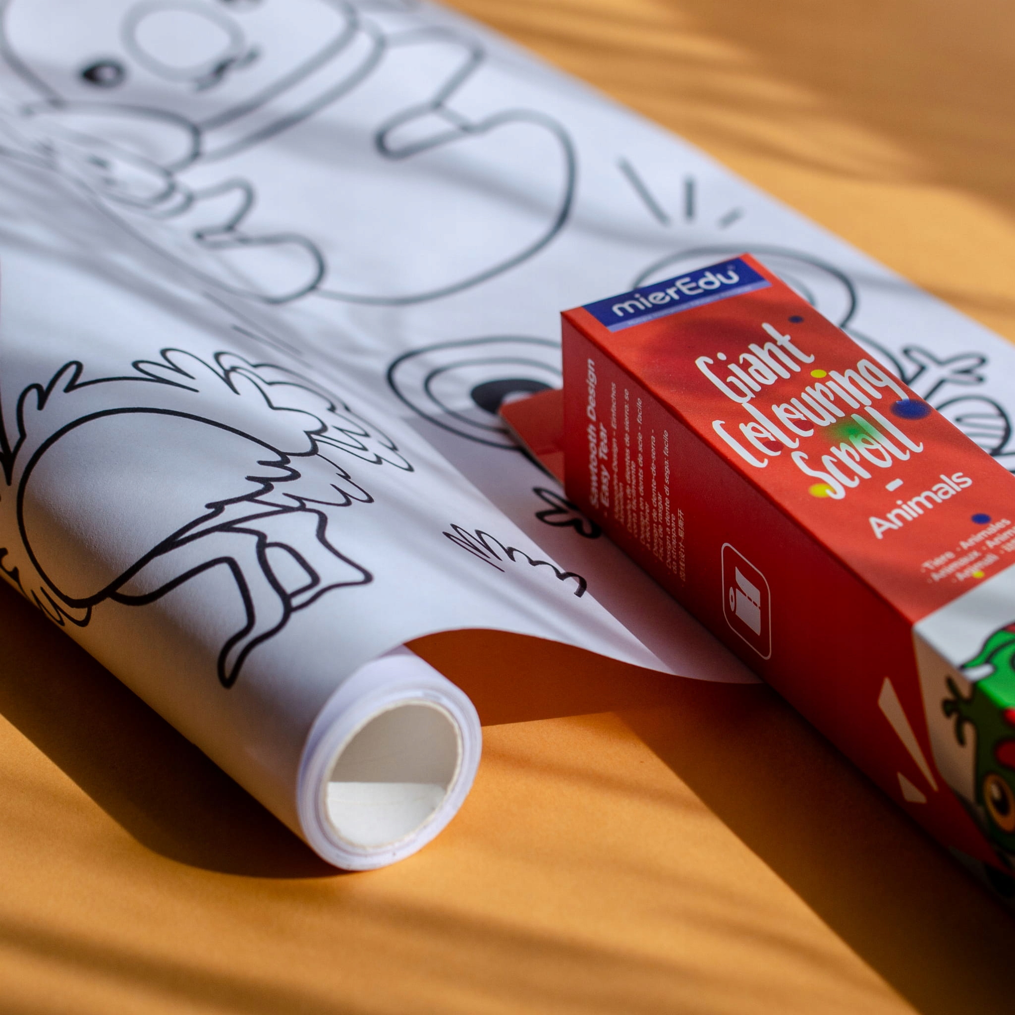 Гігантська книжка-розмальовка в рулоні - Тварини від mierEdu. Дайте волю своїй творчості з цією величезною книжкою-розмальовкою. Розмальовка має довжину 3 метри, тож гарантує багатогодинну творчу розвагу. Підходить для всіх типів олівців і фарб. Книжка-розмальовка є самоклеючою, тому її можна використовувати для розмальовування на столі, на підлозі або навіть прикріпленою до стіни. Дозволяє розвивати дрібну моторику та уяву. Упакований в картонну коробку - ідеально підходить для зберігання. Відкрийте для себе інші творчі іграшки від miEdu.