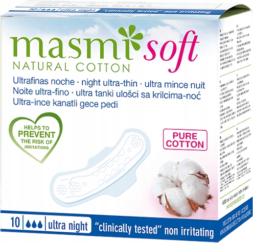 Продукція найвищої якості повністю виготовлена з 100% сертифікованої органічної бавовни (включно з абсорбуючою вставкою). Продукт 100% органічний, гіпоалергенний, без ароматизаторів і штучних абсорбентів. 0% хімікатів, 0% ГМО, 0% хлору. Вони не містять ароматизаторів, целюлози, віскози, діоксинів тощо, які можуть пошкодити жіночу шкіру, викликати запалення та алергію. Подушечки мають шовковисте зовнішнє покриття зі спеціальним переплетенням, яке запобігає прилипання волокон бавовни до шкіри. Використовується спеціальна конструкція з підтримуючою клейкою стрічкою на зовнішній стороні колодки. Гігієнічні прокладки забезпечують тривалий і комфортний захист. Дихаючий – найкращий потік повітря через натуральні волокна. Вони гарантують оптимальний рівень вологості ззовні - для обмеження зневоднення шкіри в інтимних місцях. Рівень pH натуральної бавовни відповідає фізіологічному pH нашої шкіри. В результаті продукти MASMI не порушують природну кислотність піхви. Гігієнічні прокладки MASMI м'які та делікатні при контакті зі шкірою, що гарантує максимальний комфорт. Щоб переконатися, що продукція Masmi виготовлена зі 100% органічної бавовни, є гіпоалергенною та біологічно розкладаною – вона має вісім сертифікатів: ICEA, GOTS, FSC, VEGAN, COTTON NATURAL, НЕ ТЕСТОВАНО НА ТВАРИНАХ. Усі продукти пройшли клінічні випробування.