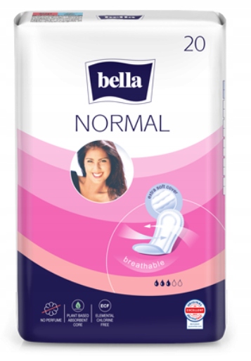 Bella Normal 20 гігієнічних санітарних серветок вони покриті м'якою і приємною на дотик не замкнену тканину, яка захищає від подразнення шкіри.