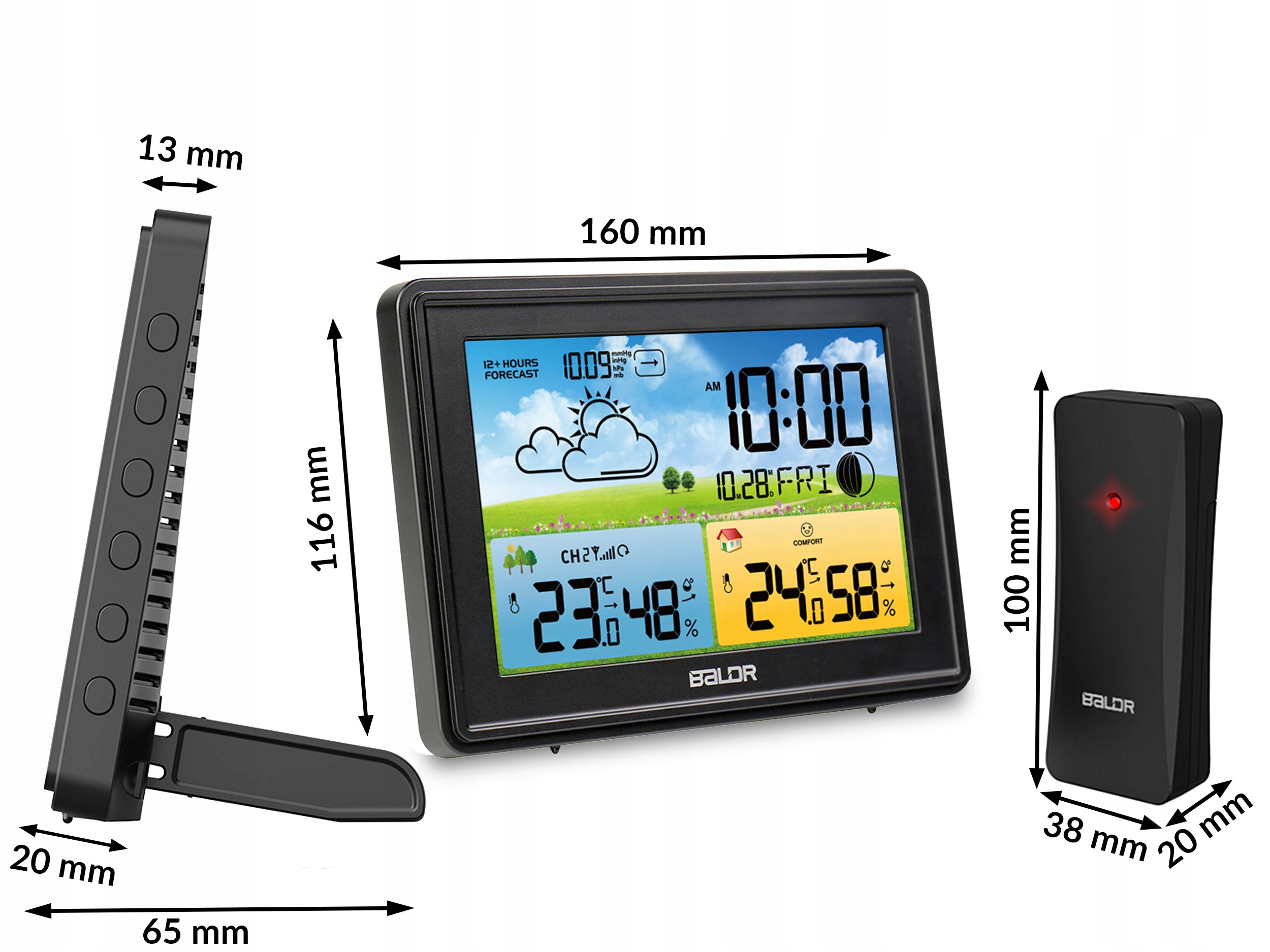 - Завдяки постійним вимірюванням температури, тиску та вологості станція аналізує та надає прогноз погоди на наступні 12 годин. < /ul>