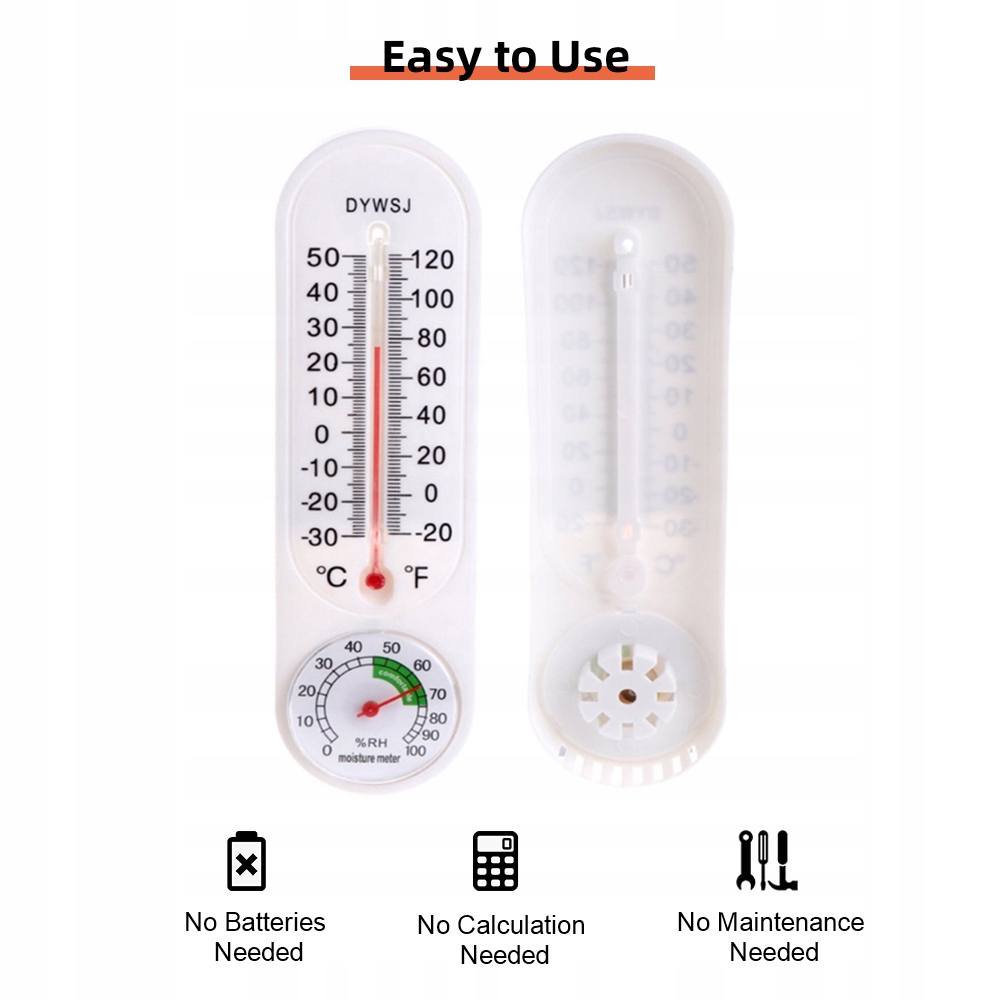 - встановлено на стіні: на задній частині термометра є отвір, тож ви можете використовувати гвинт (не включений), щоб встановити його на стіну, легко виправити його на стіні або вікні. Він також дуже легкий і портативний, ви можете взяти його куди завгодно, як побажання. 4 Заощадження грошей. Це також не потрібно.