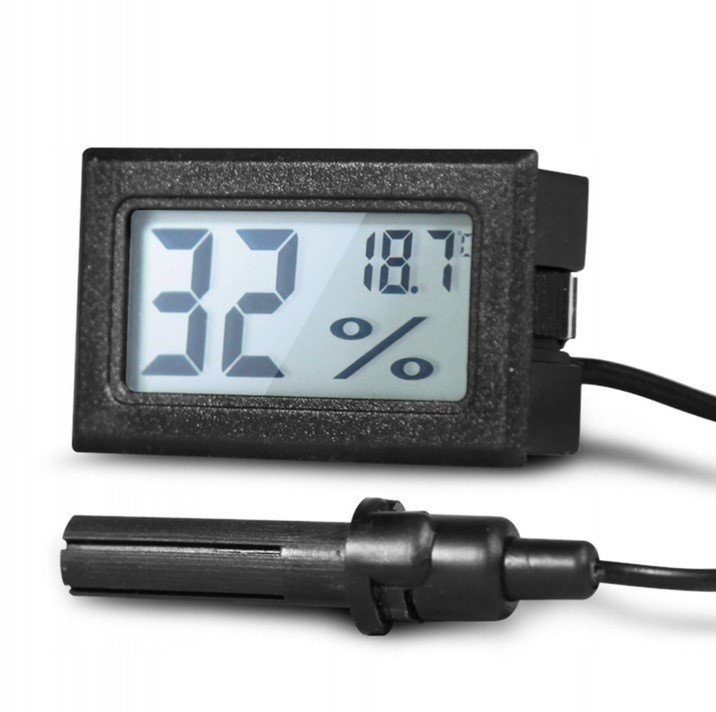 Електронний гігрометр із термометром із великим РК-дисплеєм і зондом на довгому кабелі. p>
