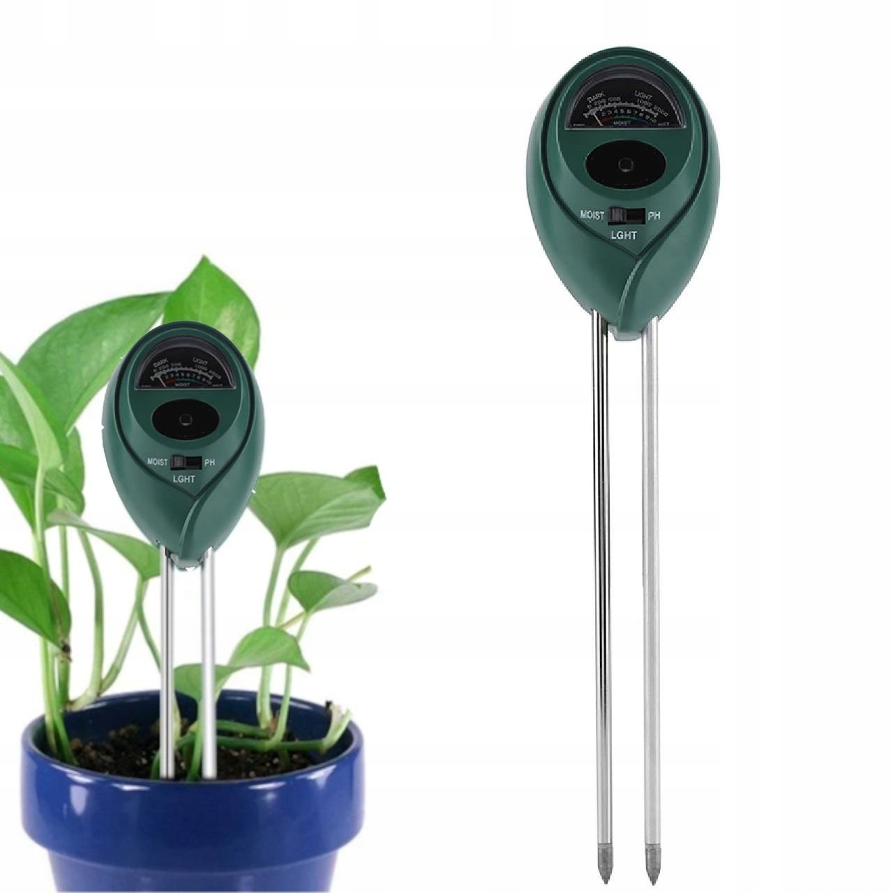 ➡️Крок 4: Через 10 хвилин прочитайте рівень вологості/pH/світла на циферблаті.