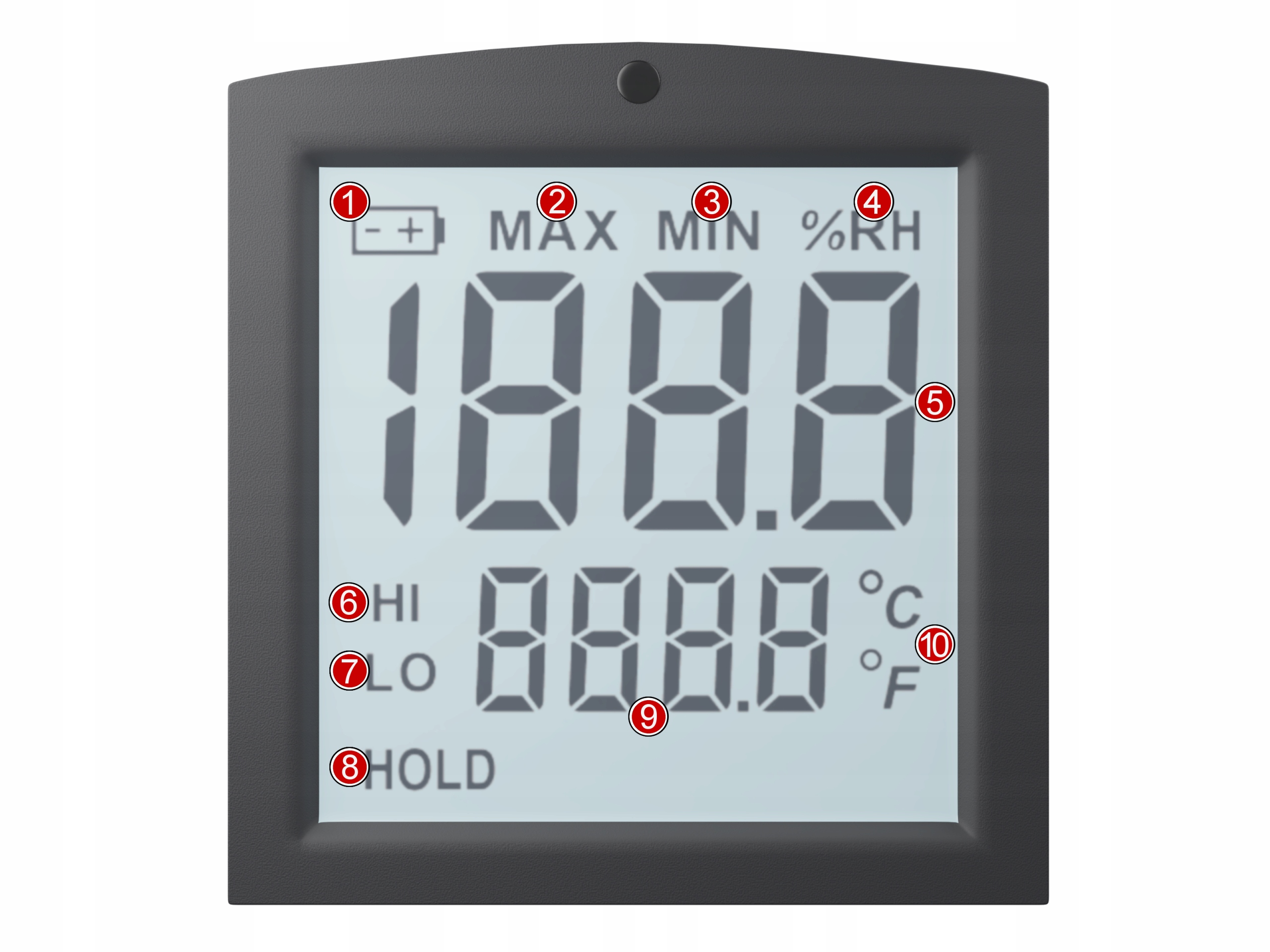 - Точність: 1,0°C (-30°C - +0°C), 0,5°C (0°C - +70°C), 1,8°F (- 22° F - +32°F), 0,9°F (32°F - +158°F)