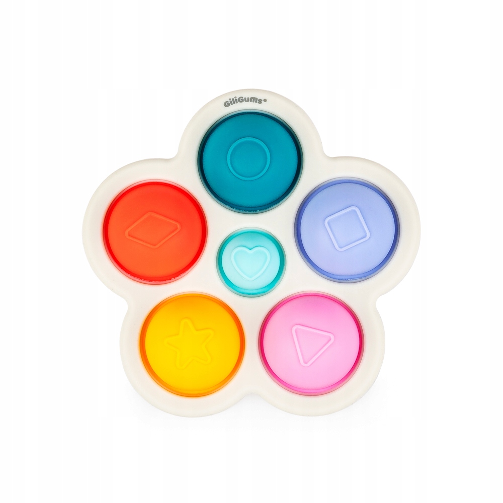 У ній є 6 виступаючих кульок, кожна з яких прикрашена різною формою. Завдання малюка буде полягати в тому, щоб штовхати кульки на іншу сторону квітки, а коли це буде зроблено, штовхати їх назад, щоб вони всі повернулися на свої місця. Окрім розваги та відкриття нових форм, ваша дитина тренуватиме спритність пальців.