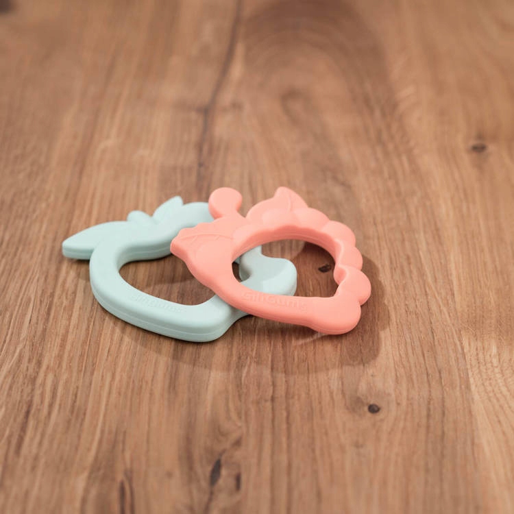 Набір силіконових прорізувачів у милому фруктовому дизайні забезпечить подвійну допомогу при прорізуванні зубів.