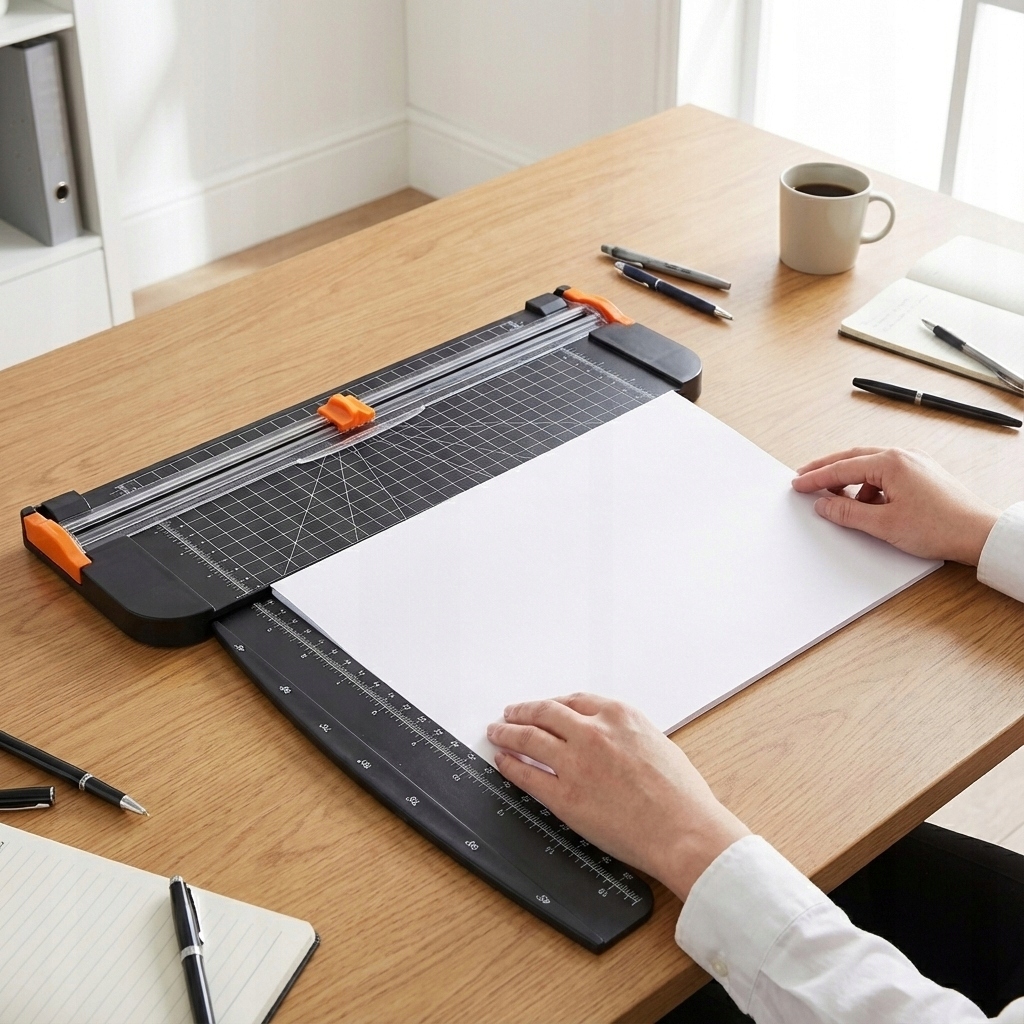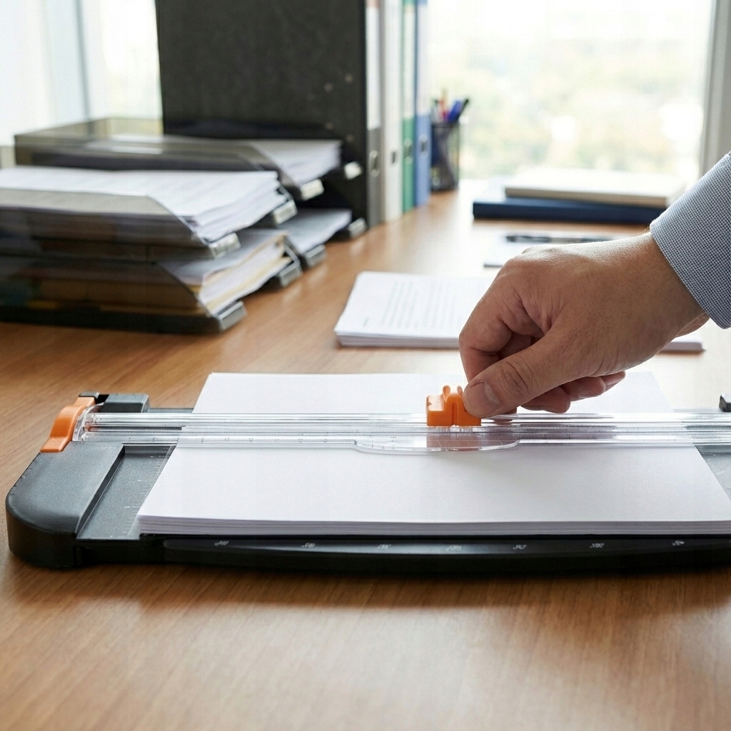 Пристрій може легко розрізати до 12 аркушів стандартного копіювального паперу одночасно. Завдяки міцній основі з АБС тример ідеально підходить не лише для документів, але й для обрізання фотографій, картону чи етикеток, завжди забезпечуючи гладкий і нерозірваний край.