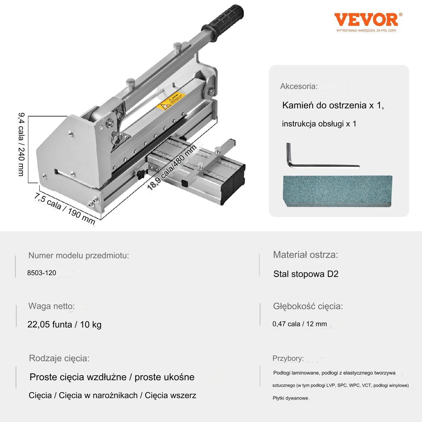 Оснащений міцними сталевими лезами, що дозволяють різати матеріали товщиною до 12 мм. Ці леза з легкістю ріжуть ламінат, вініл і килимову плитку, забезпечуючи виняткову довговічність і точність.