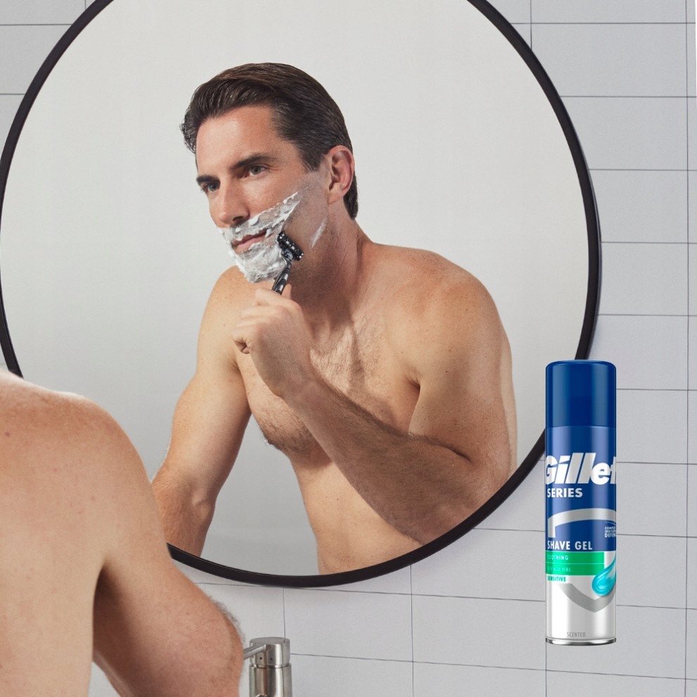 Під час контакту з водою чоловічий гель для гоління Gillette Mach3 Complete Defence Extra Comfort утворює рясну заспокійливу піну, яка допомагає підтримувати оптимальний рівень зволоженості шкіри*