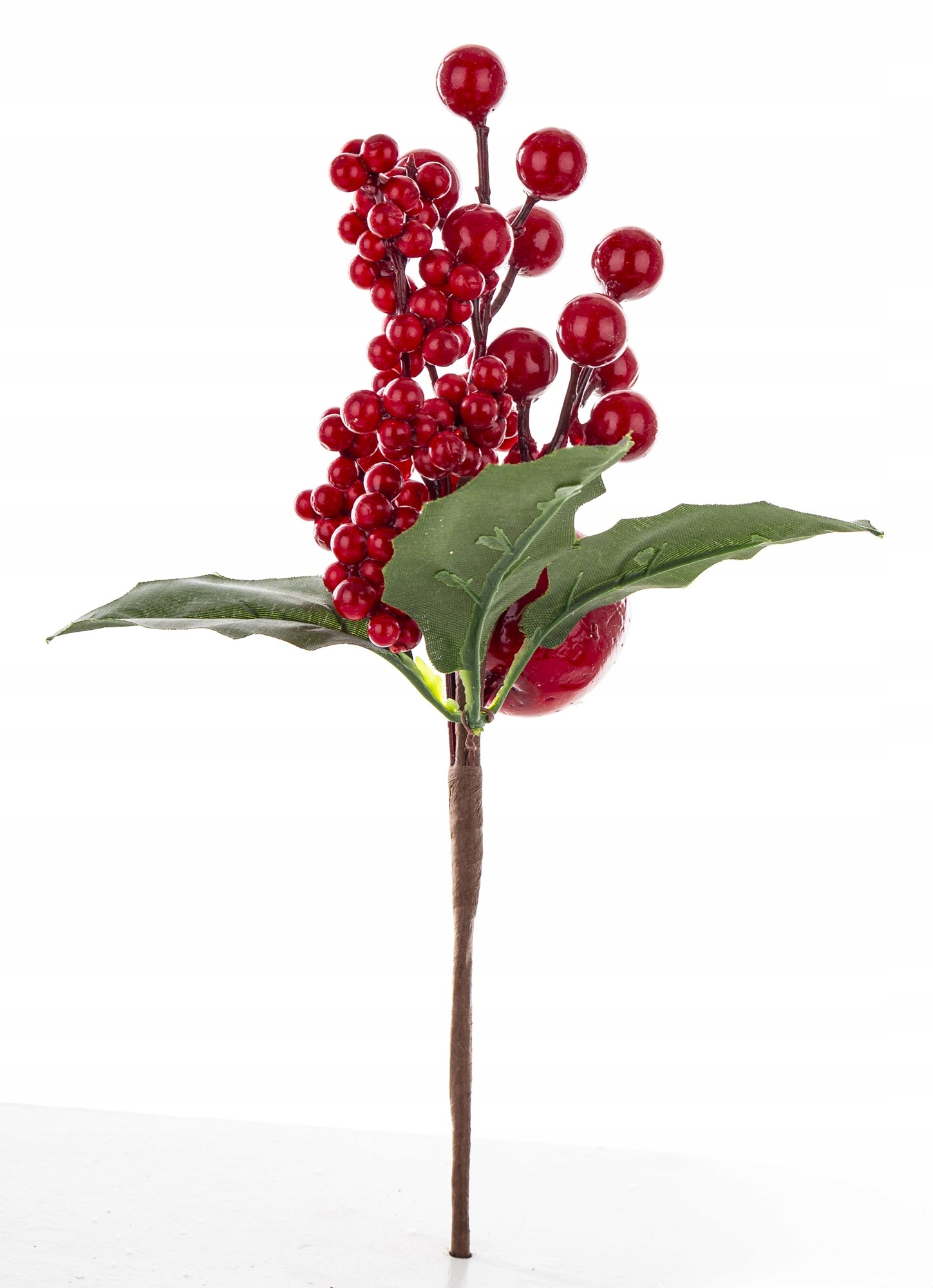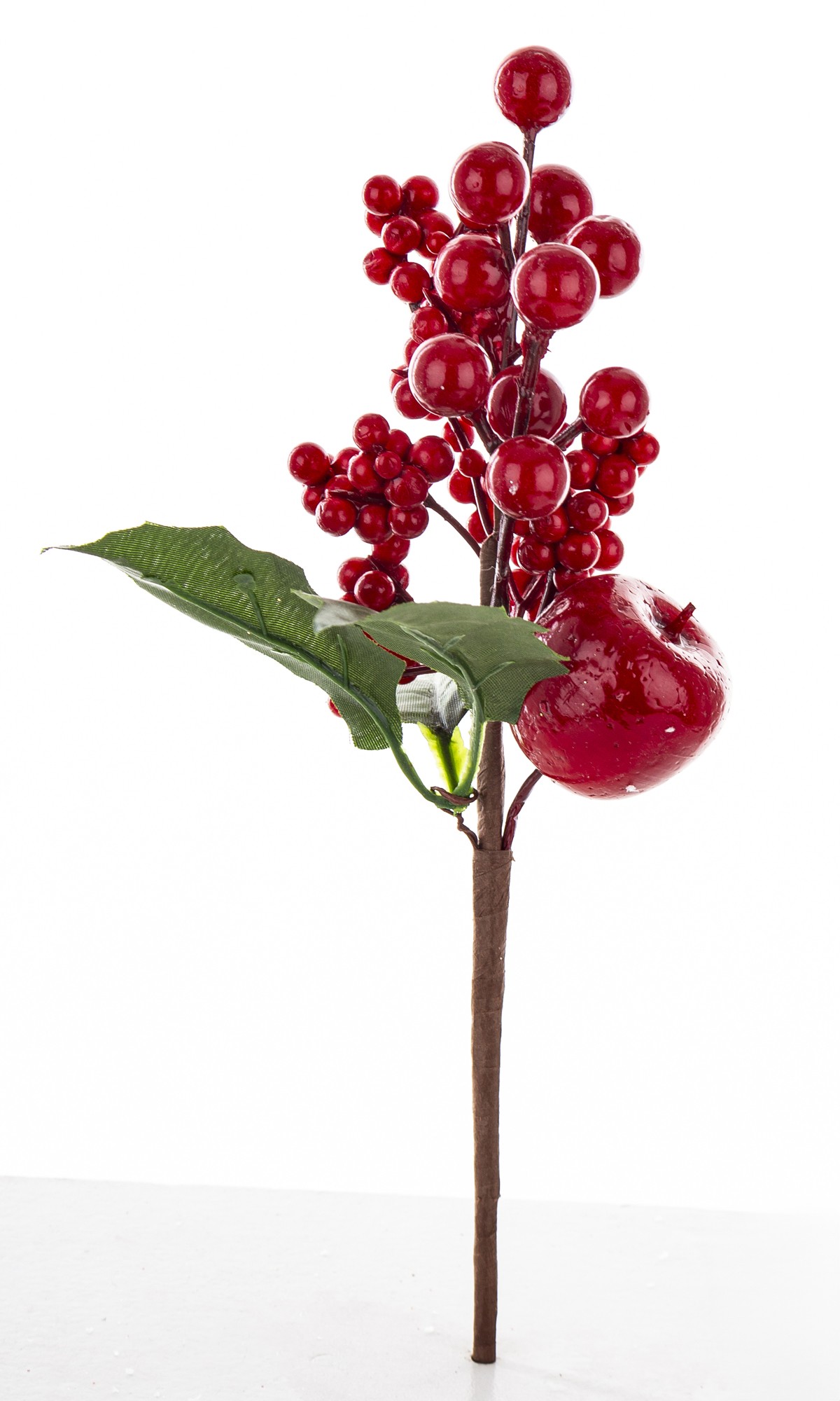 Новорічна гілка з червоними ягодами та яблуком – 24 см