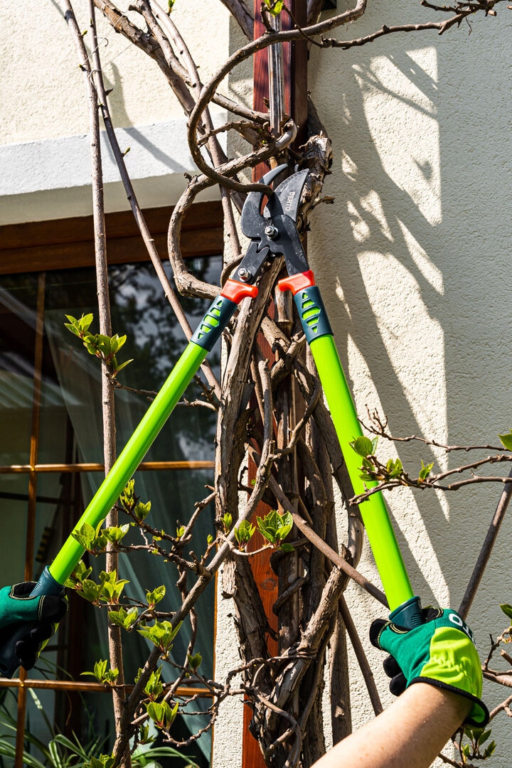 Універсальний секатор гілок із редуктором VERTO (арт. № 15G254) довжиною 700 мм і діаметром різу до 30 мм. Обхідні секатори, призначені для зрізання тонких і товстих гілок. Лезо довжиною 100 мм покрите тефлоновим покриттям, що забезпечує захист від корозії. Додатковою перевагою є редуктор, який зменшує зусилля, необхідне для різання, на 20%. Прогумована ручка ергономічної форми забезпечує безпеку і комфорт під час роботи.