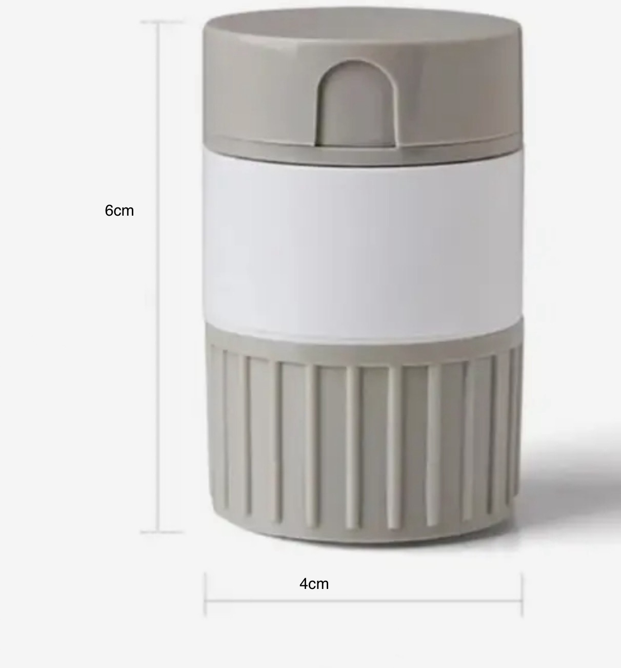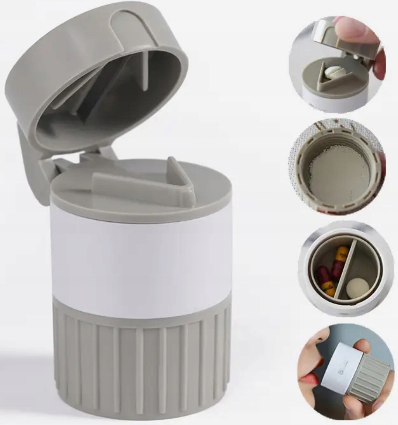 Ефективно, точно та легко розрізає таблетки натисканням на кришку. Щоб подрібнити, вставте таблетку в нижню частину та закрутіть кришку.
