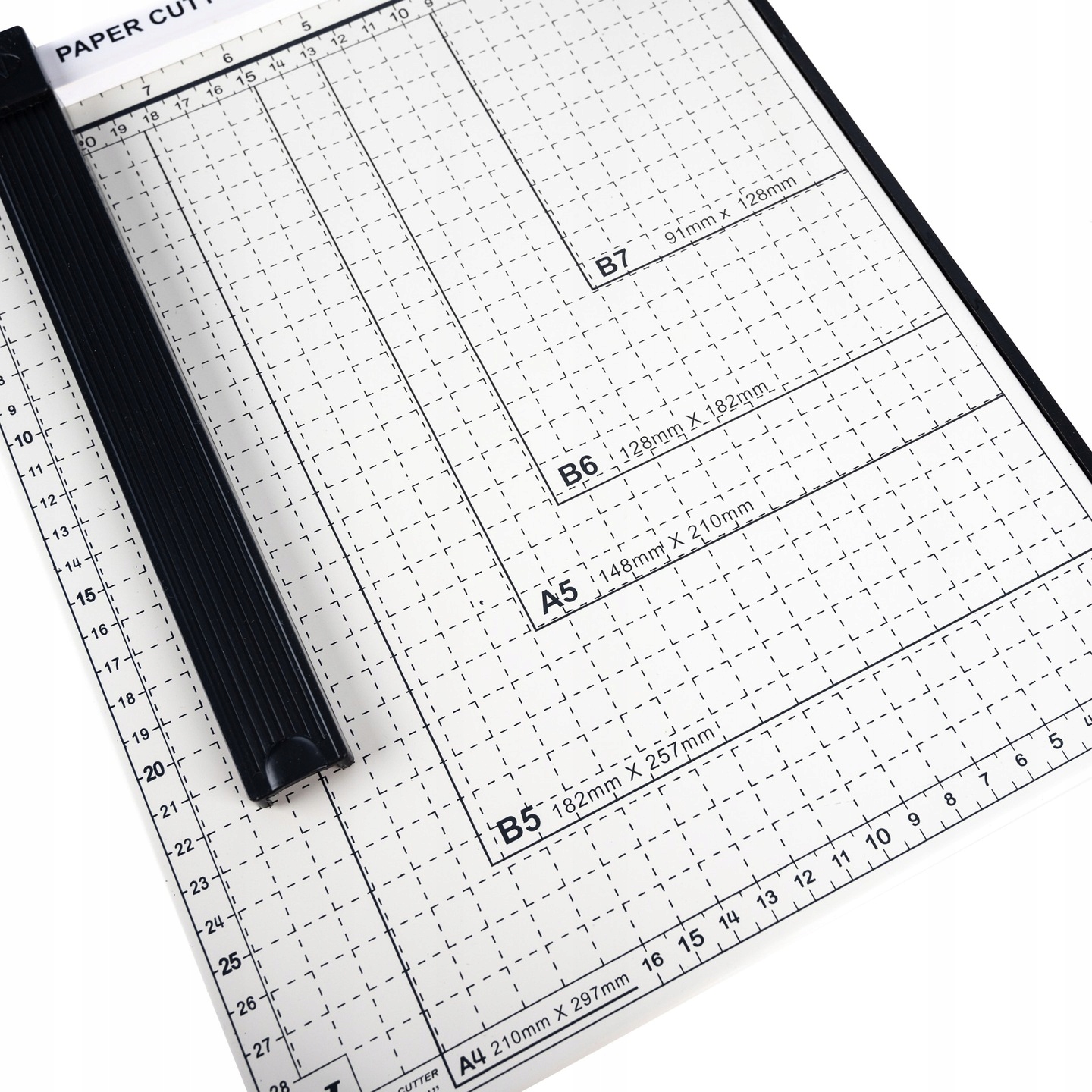 Гільйотина виготовлена з високоякісної, міцної, загартованої сталі. Загартоване лезо дозволяє швидко і точно нарізати папір, листівки, фотографії та візитні картки до потрібного розміру. Розрізає файл до 12 аркушів паперу щільністю 80 г/м2. Оснащений зручною вимірювальною сіткою (одиниці вимірювання: дюйми, сантиметри) зі стандартними розмірами паперу (B7, B6, A5, B5, A4).