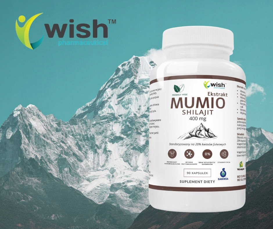 - Mumio 400mg Shilajit Extract від WISH Pharmaceutical базується на сировині від відомої корпорації Sabinsa Corporation, постачальника рослинних екстрактів, мінералів, функціональних інгредієнтів для фармацевтичної промисловості та дієтичних добавок. Компанія поєднує принципи традицій, інновацій та досліджень, щоб забезпечити альтернативні натуральні продукти.
