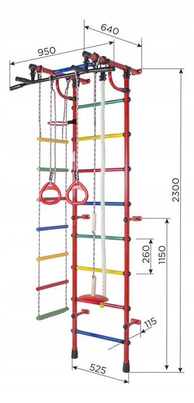 Гімнастична драбина підходить для дитячих вправ, для кріплення на стіну, набір складається з драбини, мотузкової драбини, нековзної планки, канату, гімнастичної кільця, гойдалки та баскетбольного кільця.