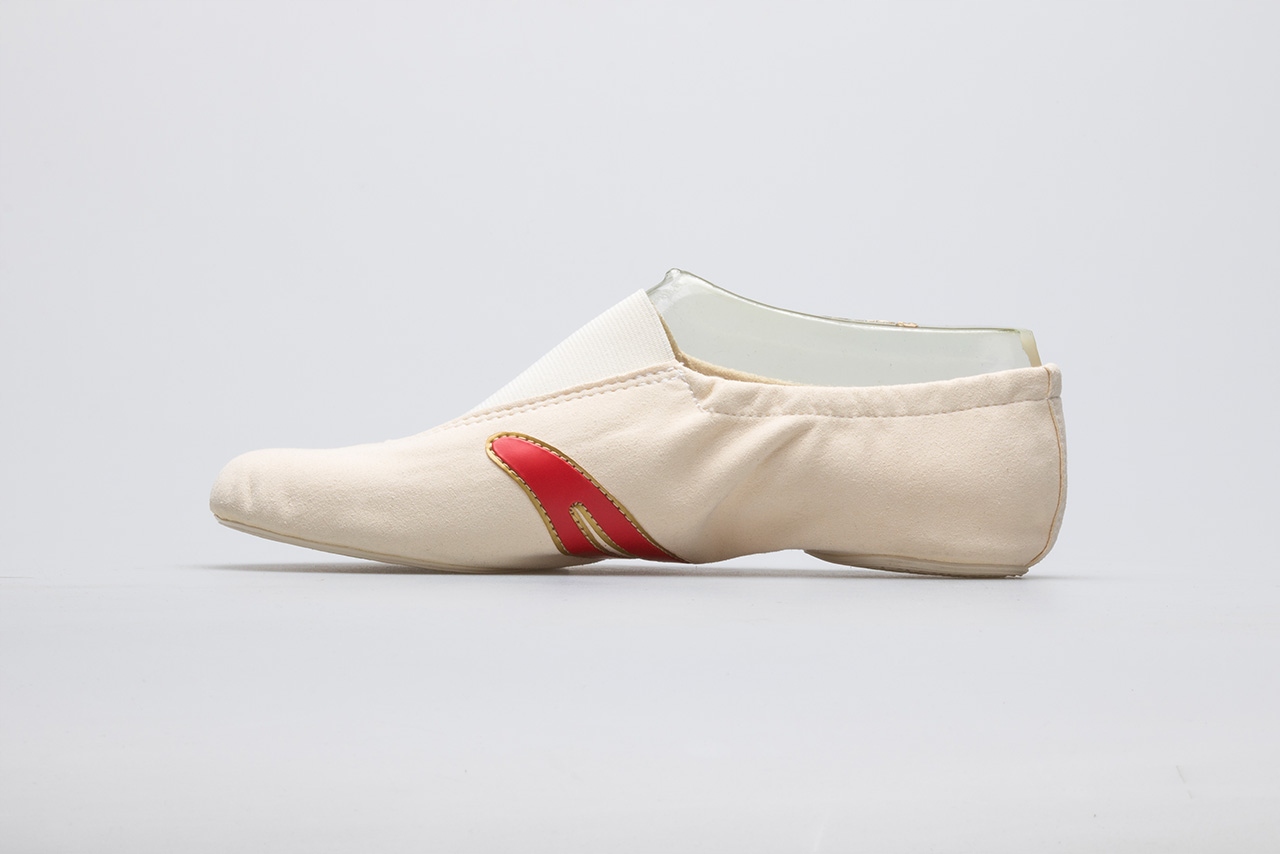 Стрибки на батуті, доріжка, балет, акробатична гімнастика або коригувальні вправи - професійні гімнастичні балетки IWA Gymnastics ® - модельIWA 502в культовому кремовому кольорі з червоними декоративними елементами. Вони забезпечують комфорт і свободу рухів під час занять спортом. Вони точно облягають ногу і не зісковзують під час використання. Підошва з високоякісної гуми, стійкої до стирання, запобігає ковзанню.