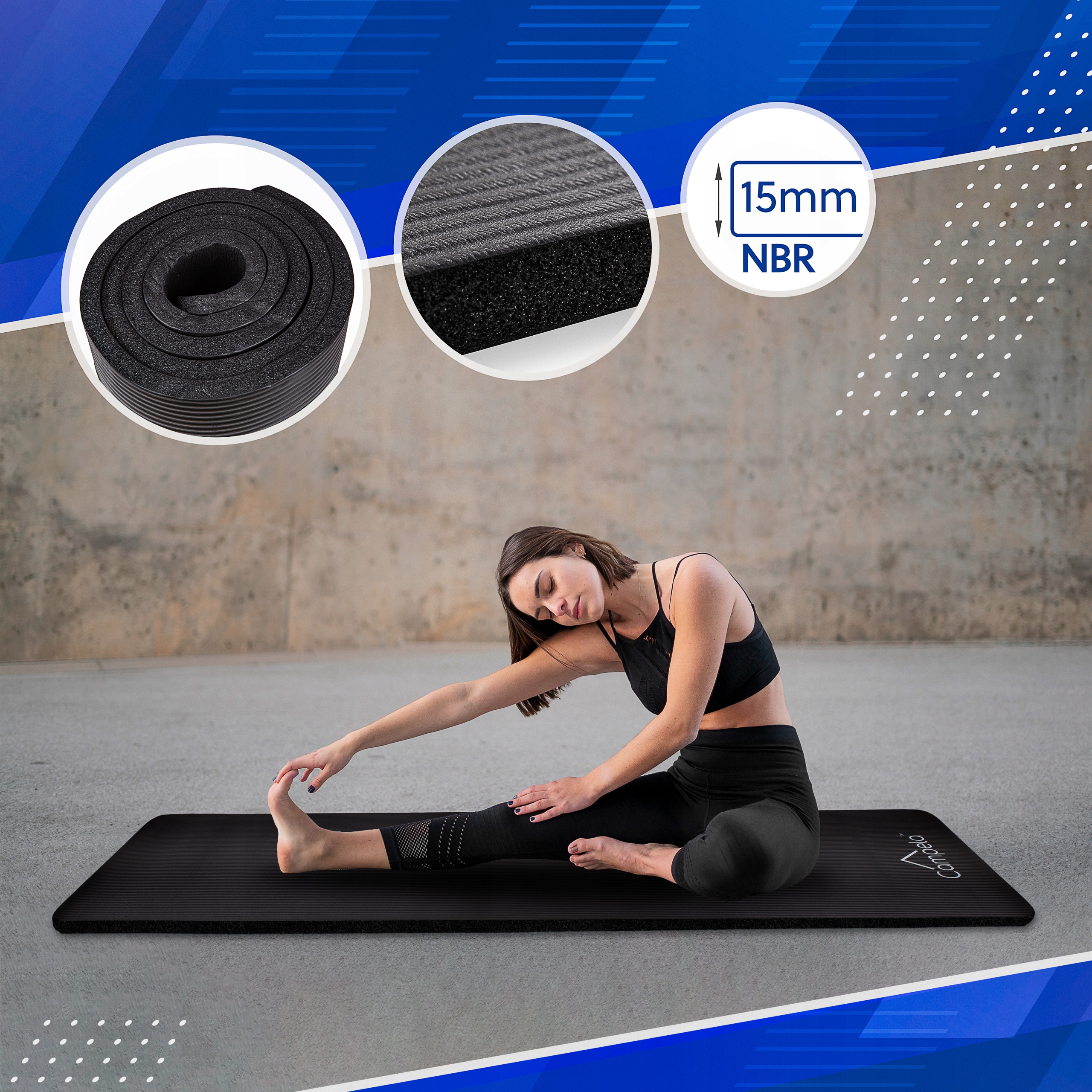 Поверхня килимка приємна на дотик, а завдяки високій товщині він є ідеальною основою як для загальнооздоровчих вправ, так і для йоги та пілатесу. Міцний надзвичайно товстий пластик NBR.