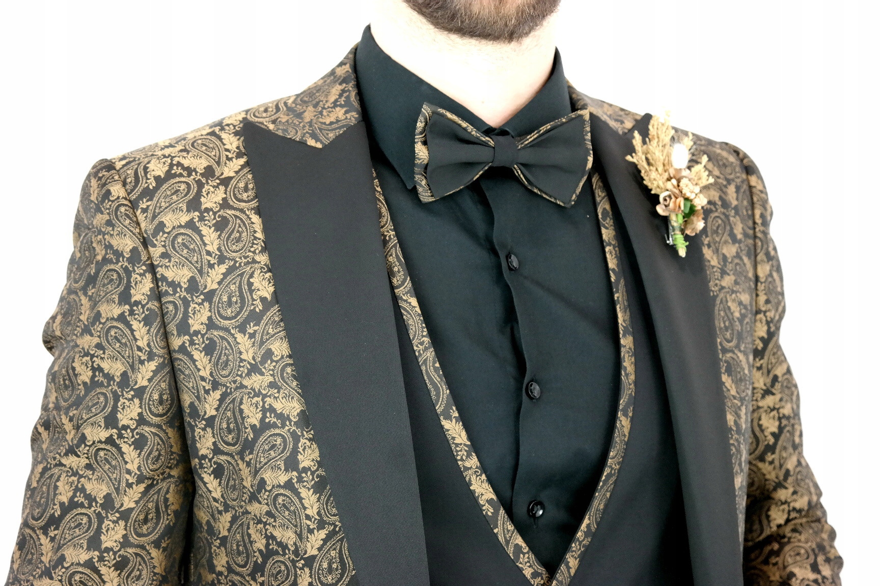- Набір включає: піджак, жилет, метелик, шпильку та штани