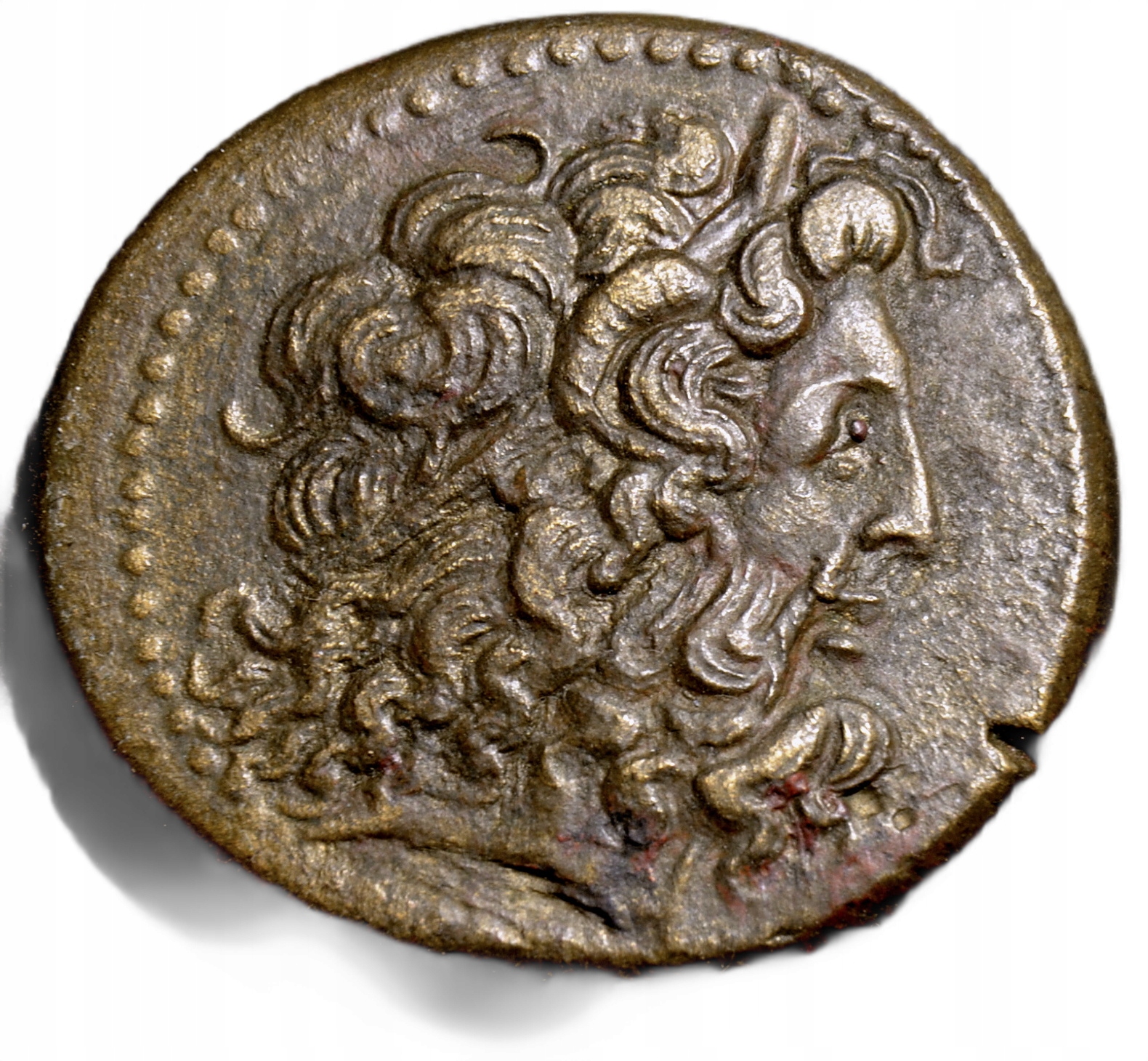 Красива, велика і масивна (32,11 г.), Дуже вражаюча монета - Сестер з нею, аверс зображує велику стильну голову Зевса Аммона з Барані Роги в стуканні за волосся, на звороті орла, що стоїть на проміні блискавки, під ним монограмою 246 -22 ", на лівій стороні, а також монограмою 22222". III Euergetetes, трибола, безумовно, рідше, ніж драхми, і зазвичай пропонуються в дуже поганій поведінці, тому не дивно, що записати з 11 аукціонів LEU 2022 (фото 6), на якому приємна копія цієї монети отримала 1300 CHF (NET) (Gross)