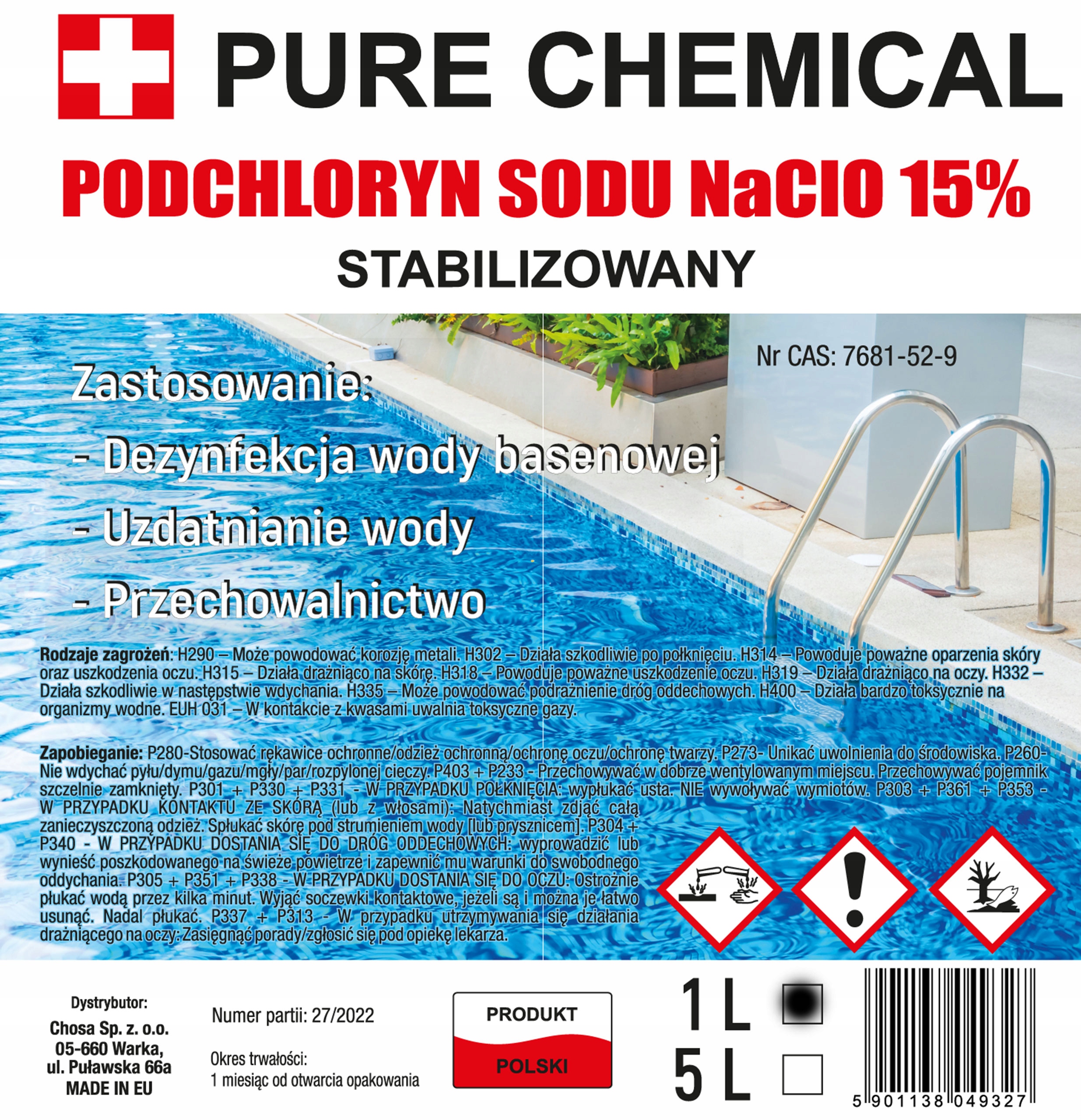 ГІПОХЛОРИТ НАТРІЮ 15% ХЛОР РІДИНА ДЛЯ БАССЕЙНУ 1л