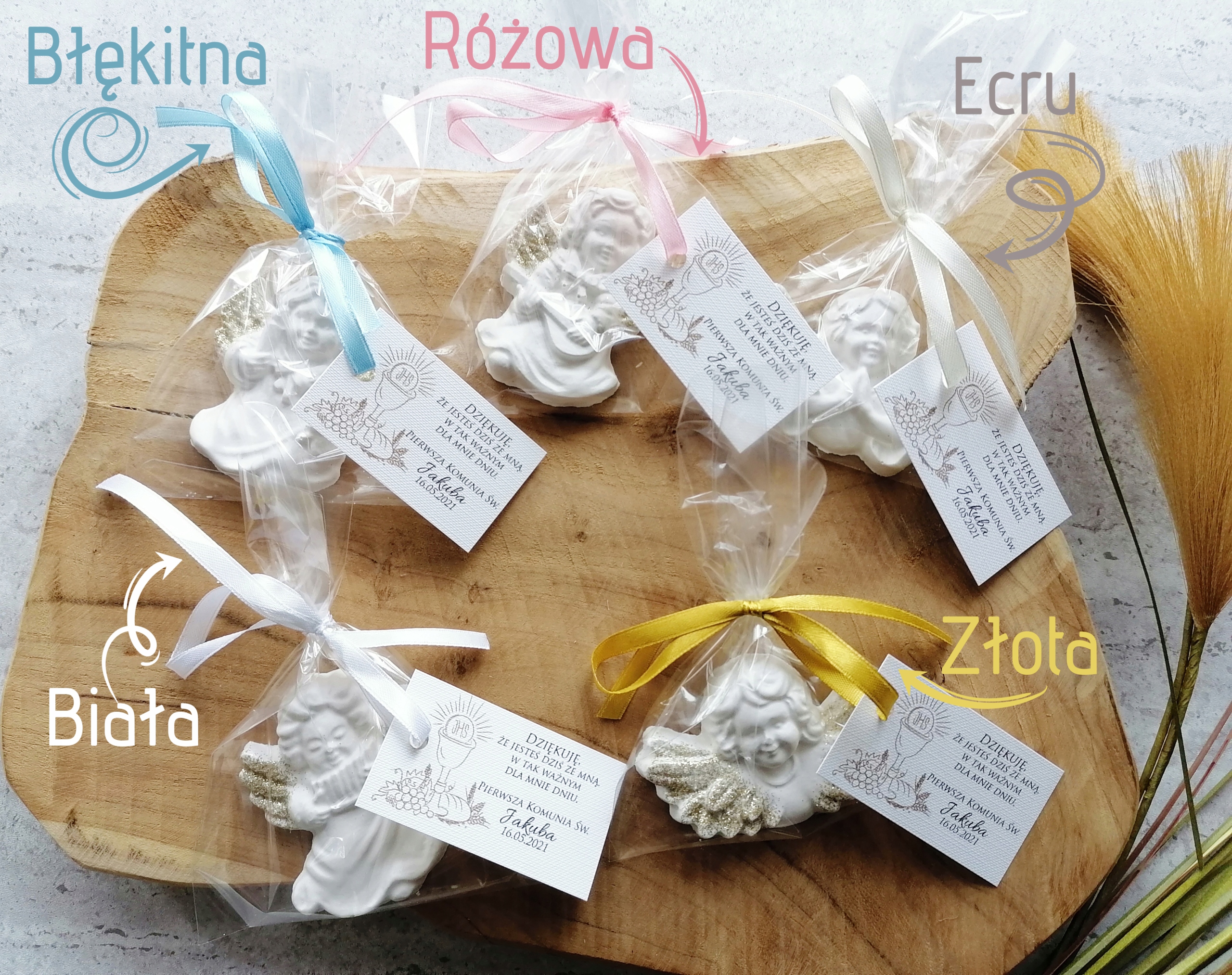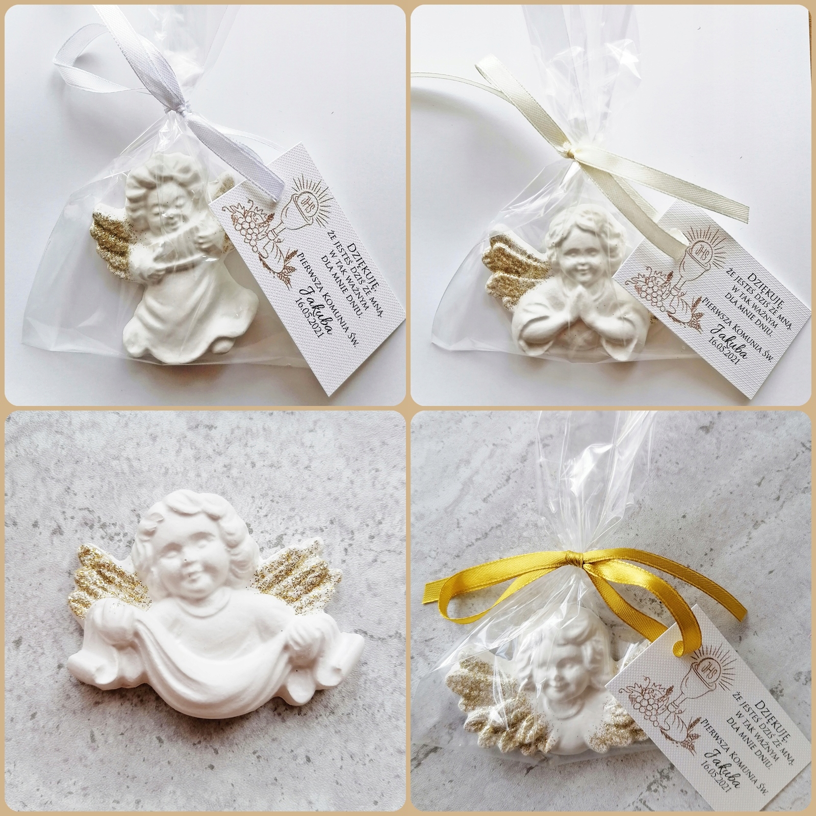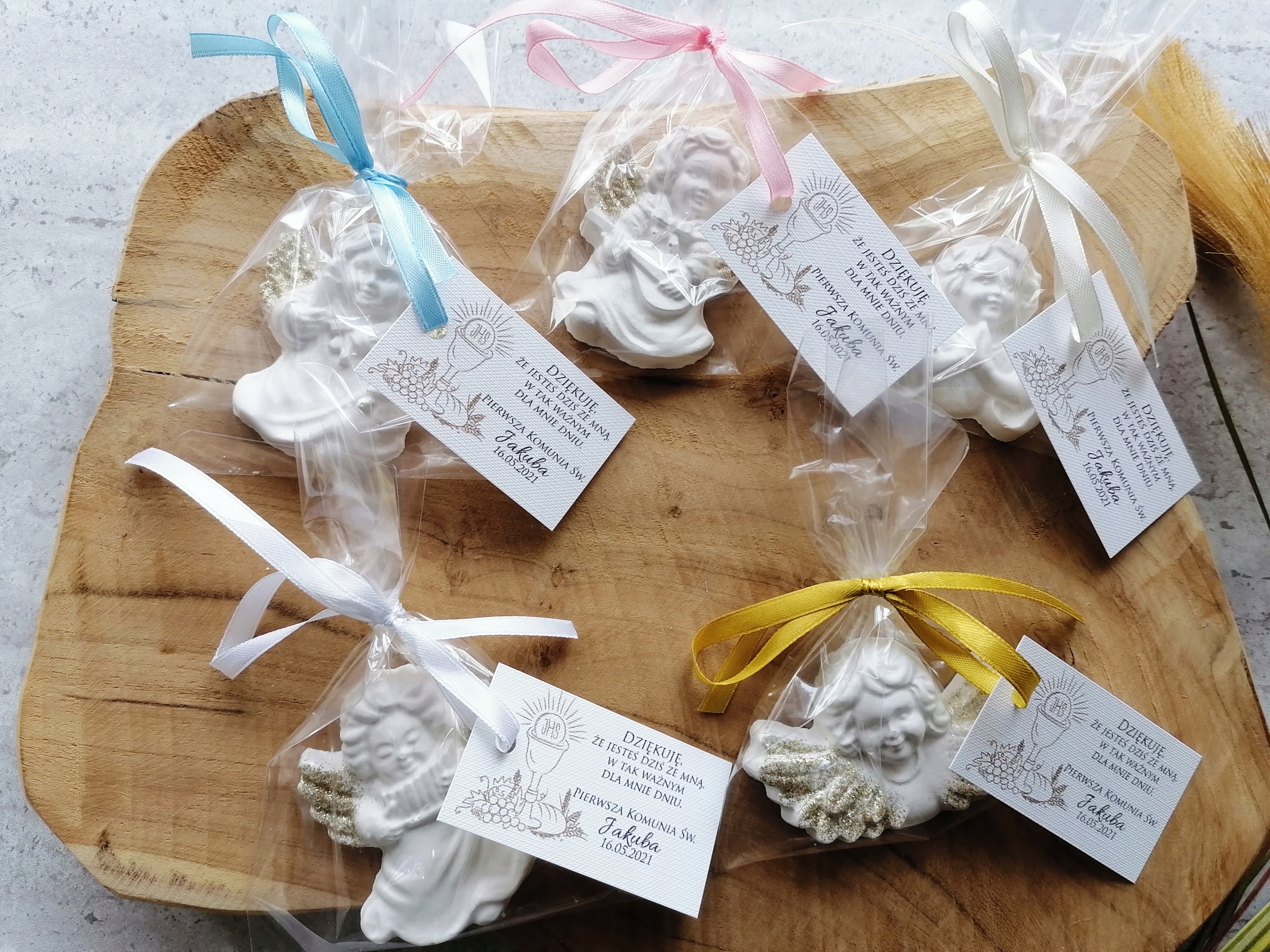Гарні гіпсові янголи як подяка за гостей з нагоди Першого Святого Причастя.