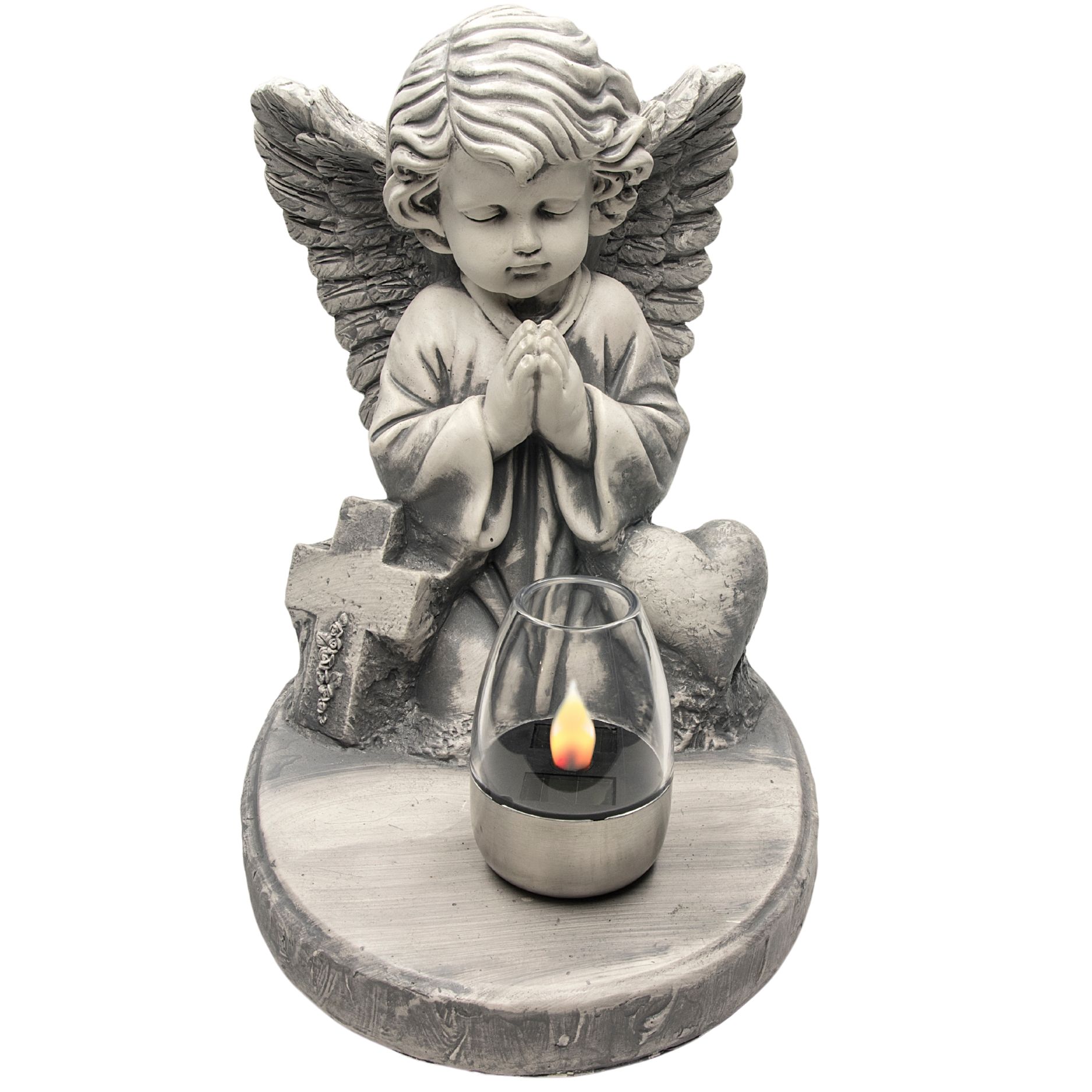 ➡️ Декоративна гіпсова фігурка для саду, надгробок зі світлодіодною лампою у формі ангела