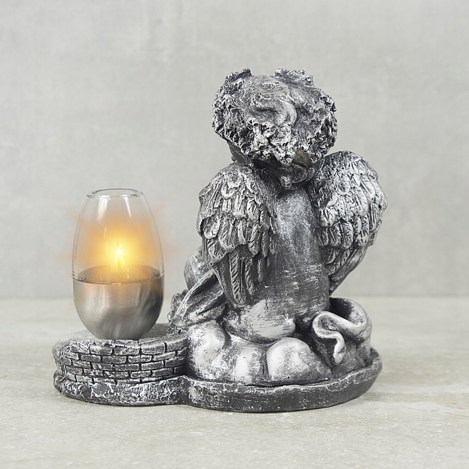 Декоративна гіпсова садова статуетка, надгробний пам'ятник зі світлодіодною лампою у формі ангела - позолочена