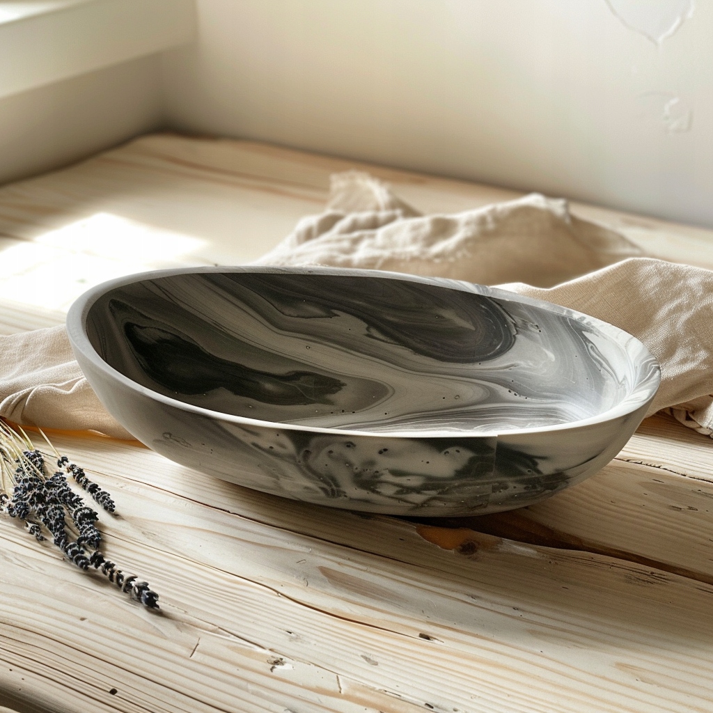 Гіпсова форма ручної роботи з елегантним мармуровим візерунком - ідеальна як основа для створення соєвих свічок, декорацій або як самостійний елемент дизайну інтер'єру.