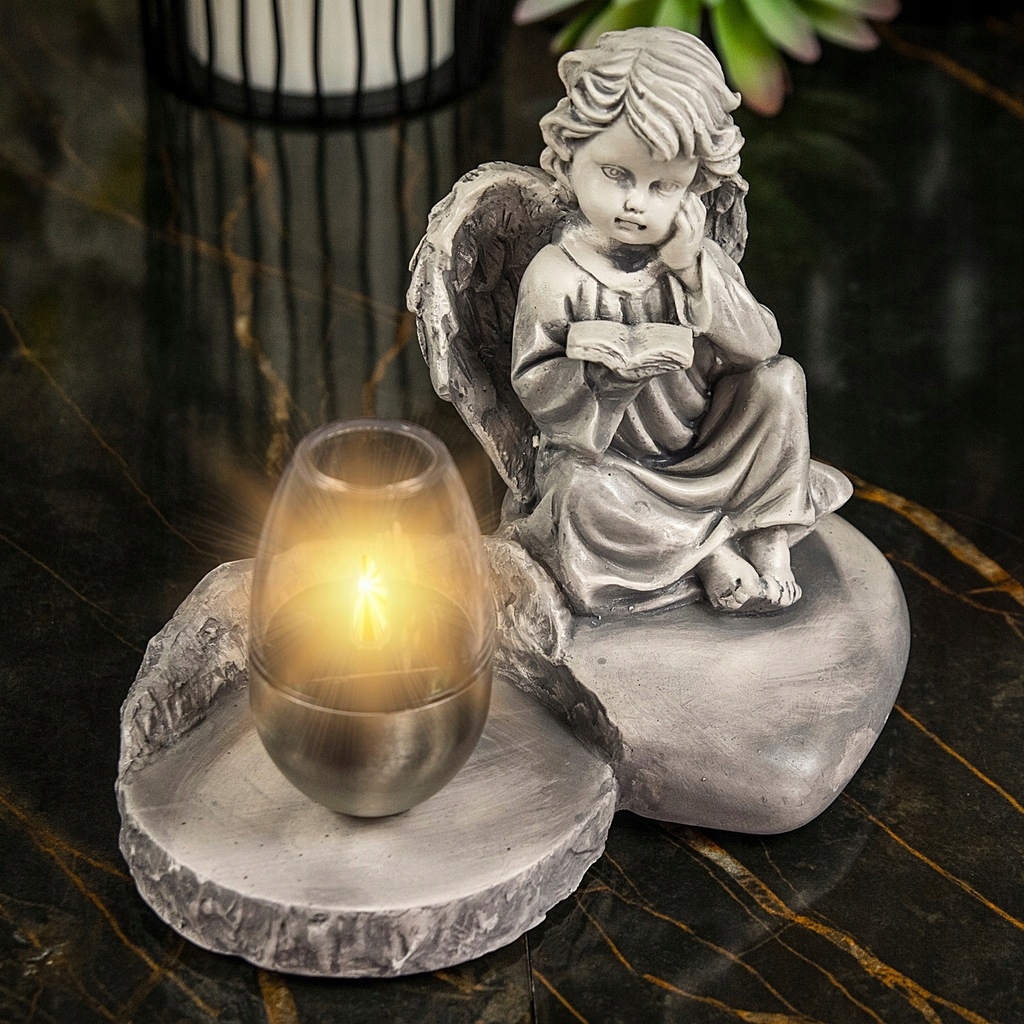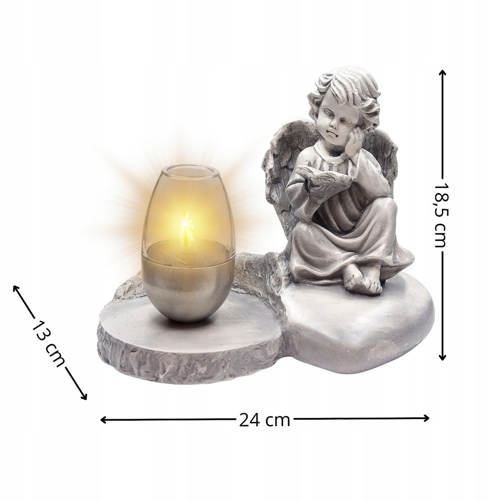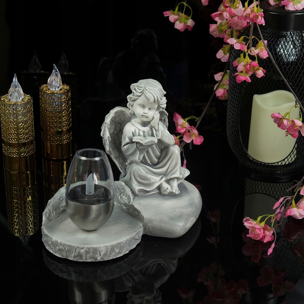 ГІПСОВА СВІЧКА АНГЕЛ ДЛЯ МОГИЛИ СТАТУТКА СОНЯЧНА СВІТЛОДІОДНА ЛАМПА Підставка