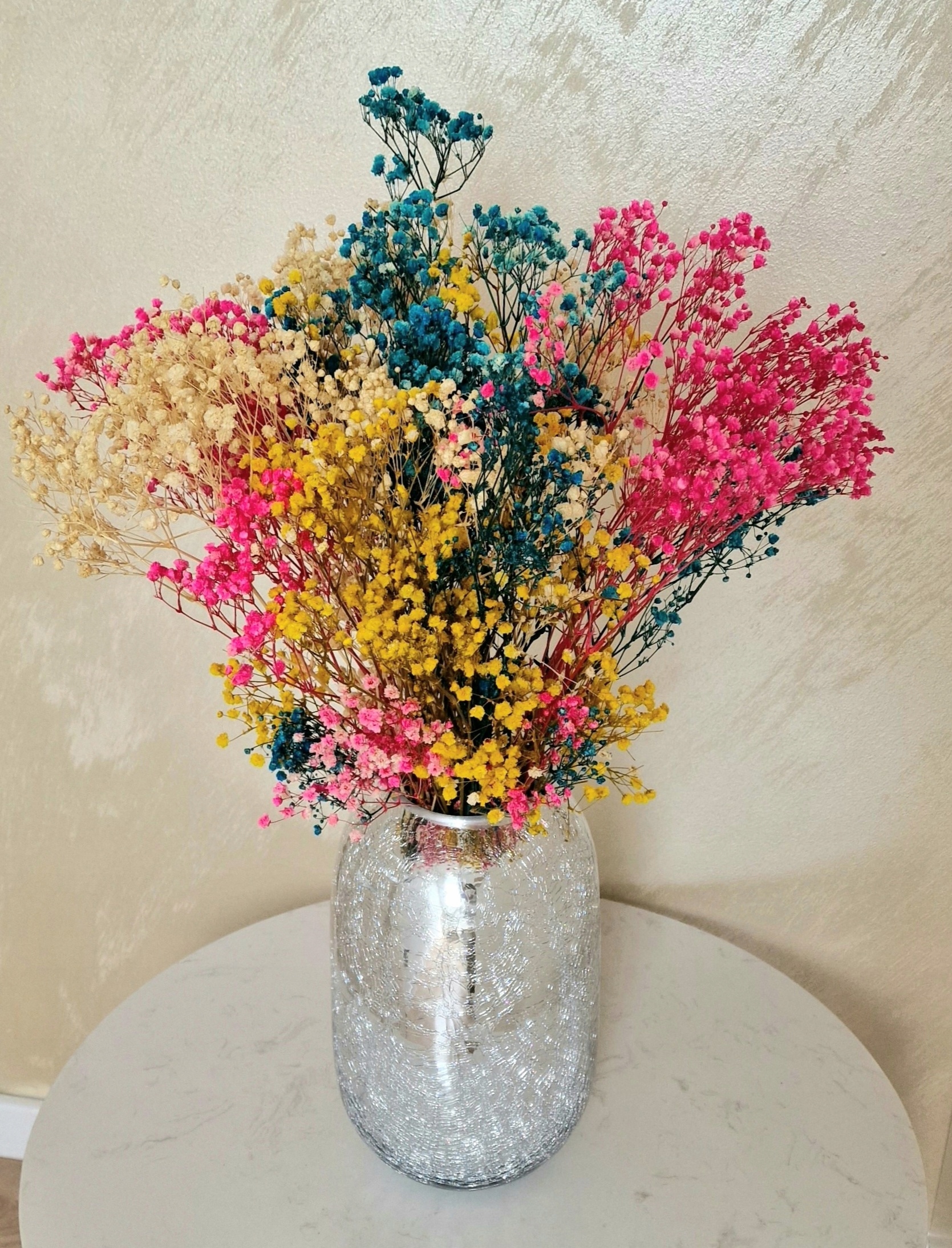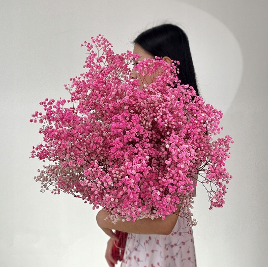 Букет із натуральної гіпсофіли став декоративним хітом останніх місяців. Численні маленькі квіткові голівки роблять його ніжним і витонченим.