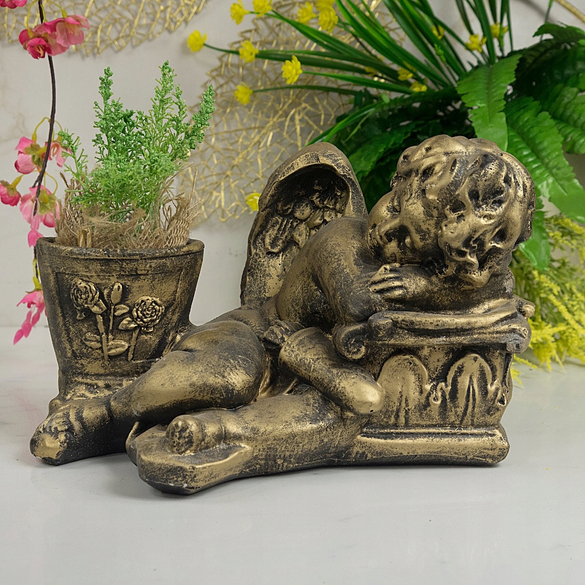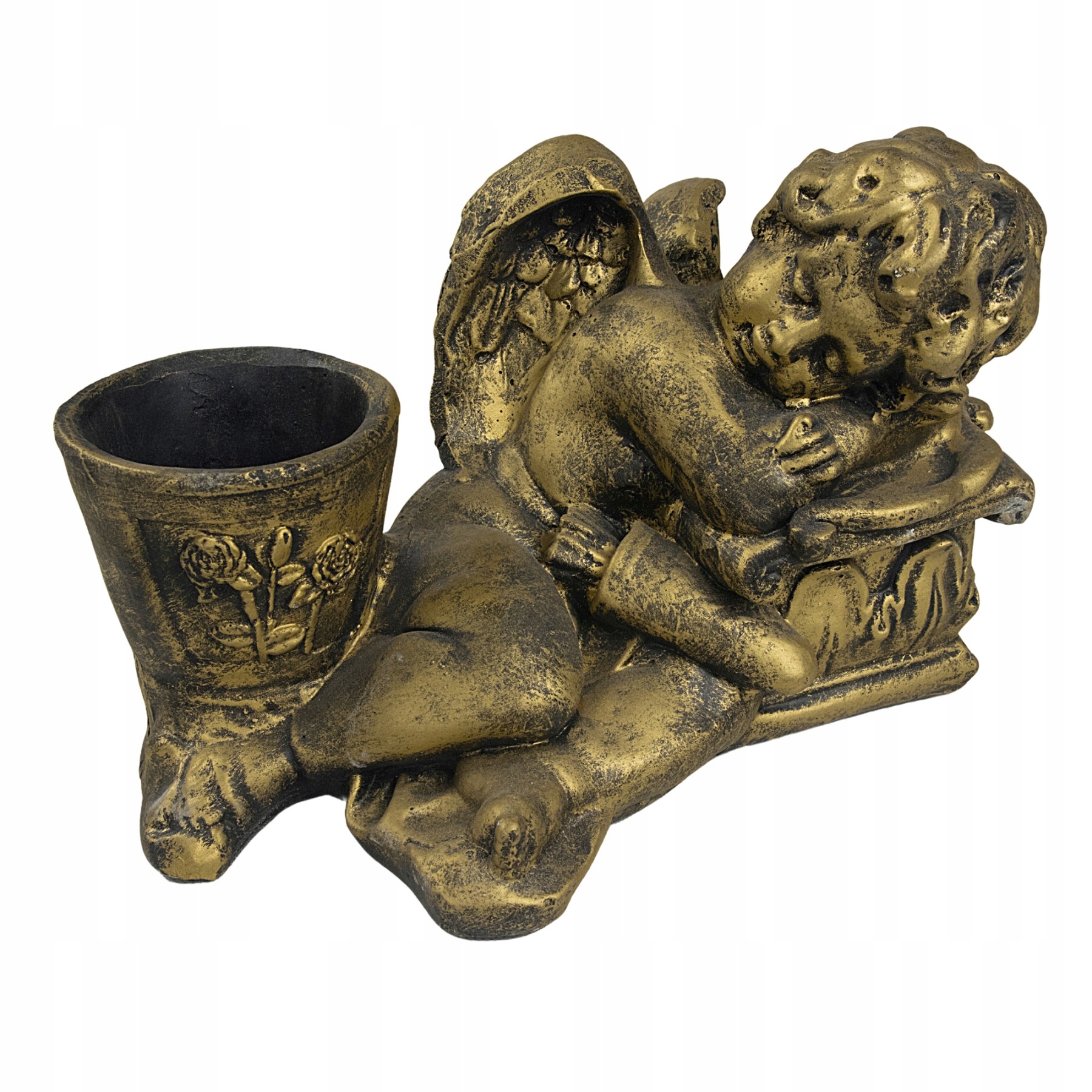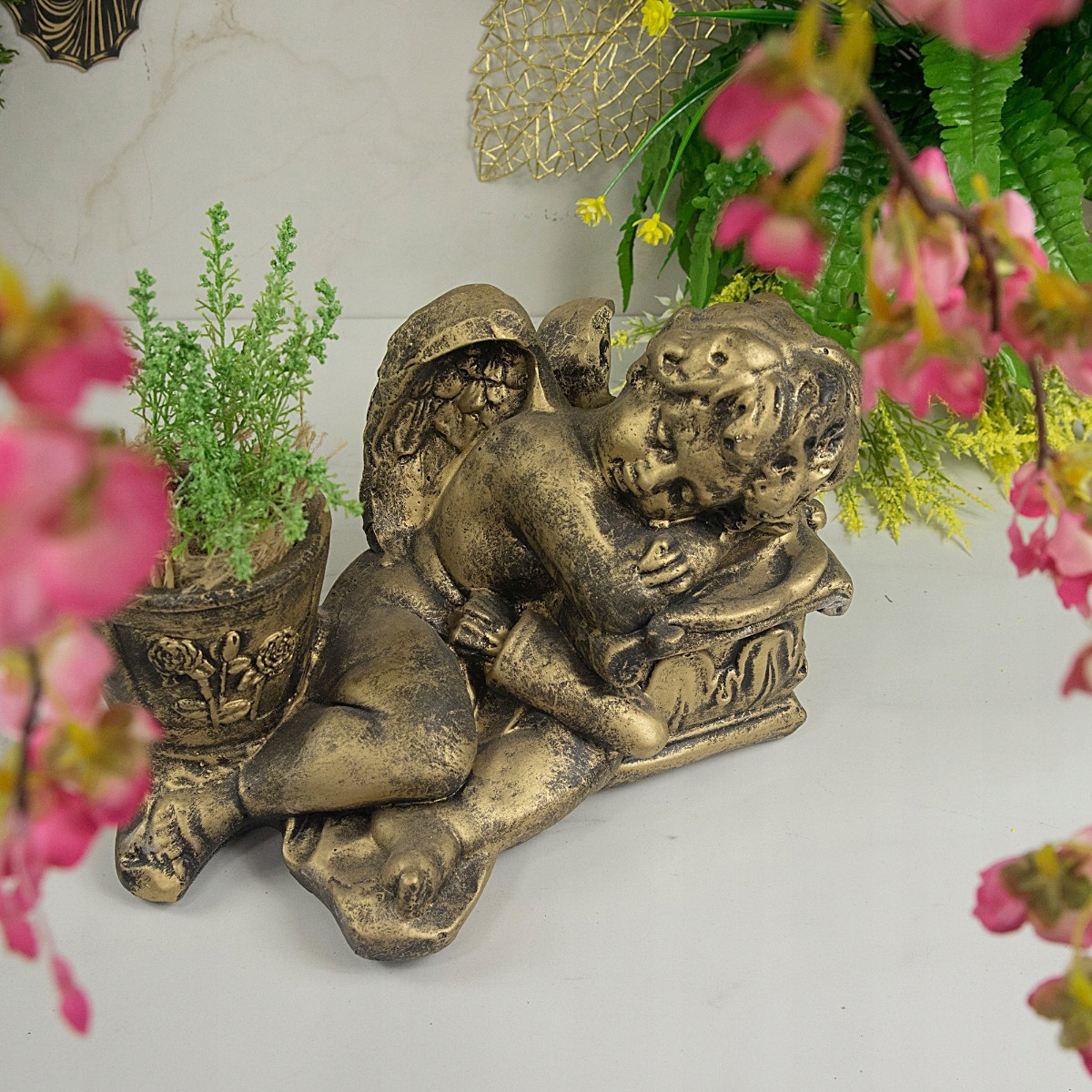 Декоративна садово-надгробна фігурка у вигляді ангела - позолочена